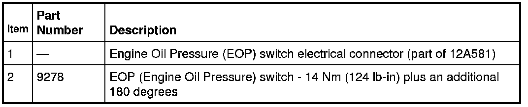 - Apply thread sealant with PTFE to the EOP (Engine Oil Pressure) switch threads prior to installation.