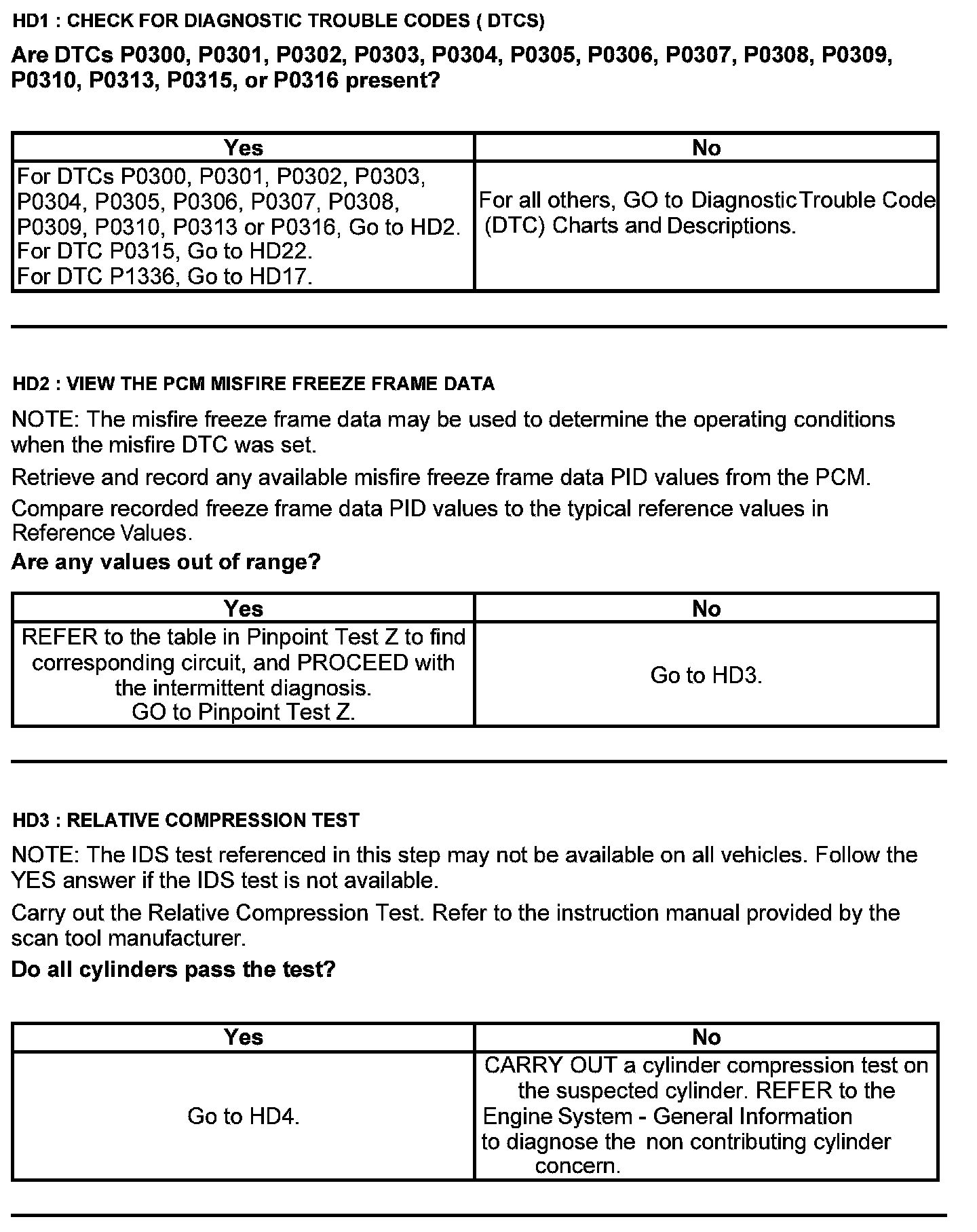 Home >> Ford >> 2012 >> Edge FWD V6-3.7L >> Repair and Diagnosis >> Powertrain Management >> Computers and Control Systems >> Testing and Inspection >> Pinpoint Tests >> Test HD: Misfire Detection Monitor