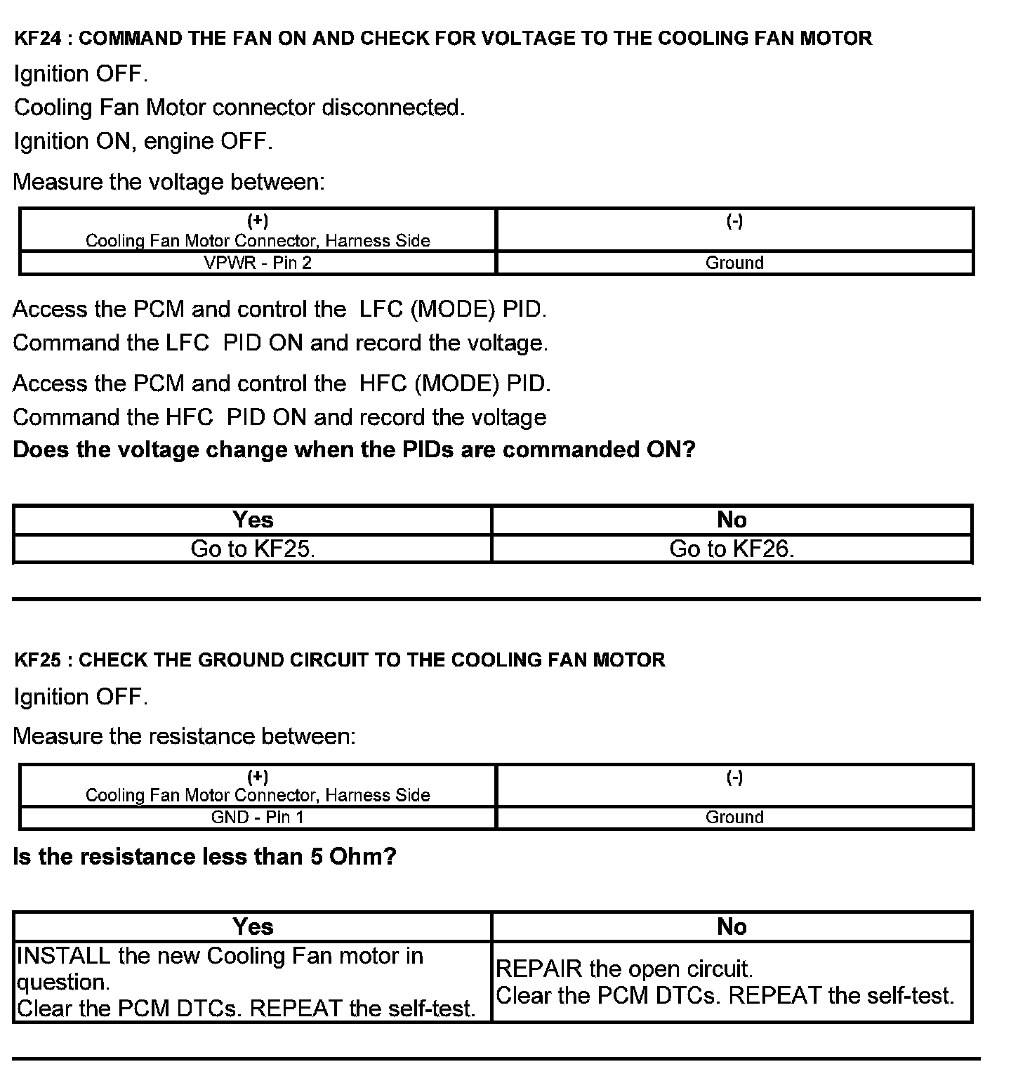 Home >> Ford >> 2012 >> Edge FWD V6-3.7L >> Repair and Diagnosis >> Powertrain Management >> Computers and Control Systems >> Testing and Inspection >> Pinpoint Tests >> Test KF: Fan Control Relays