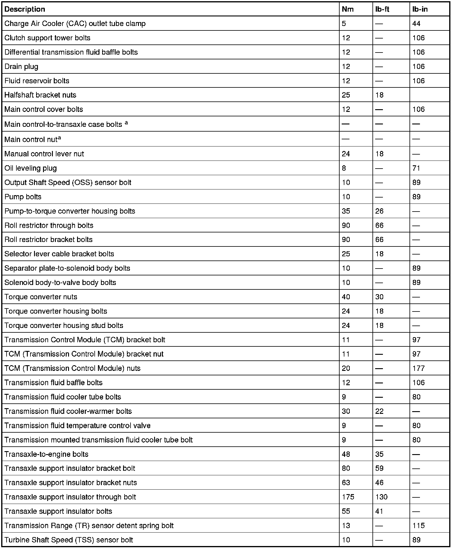 Home >> Ford >> 2012 >> Edge FWD V6-3.7L >> Repair and Diagnosis >> Specifications >> Mechanical Specifications >> Automatic Transmission/Transaxle >> System Specifications >> Automatic Transaxle/Transmission - 6F35