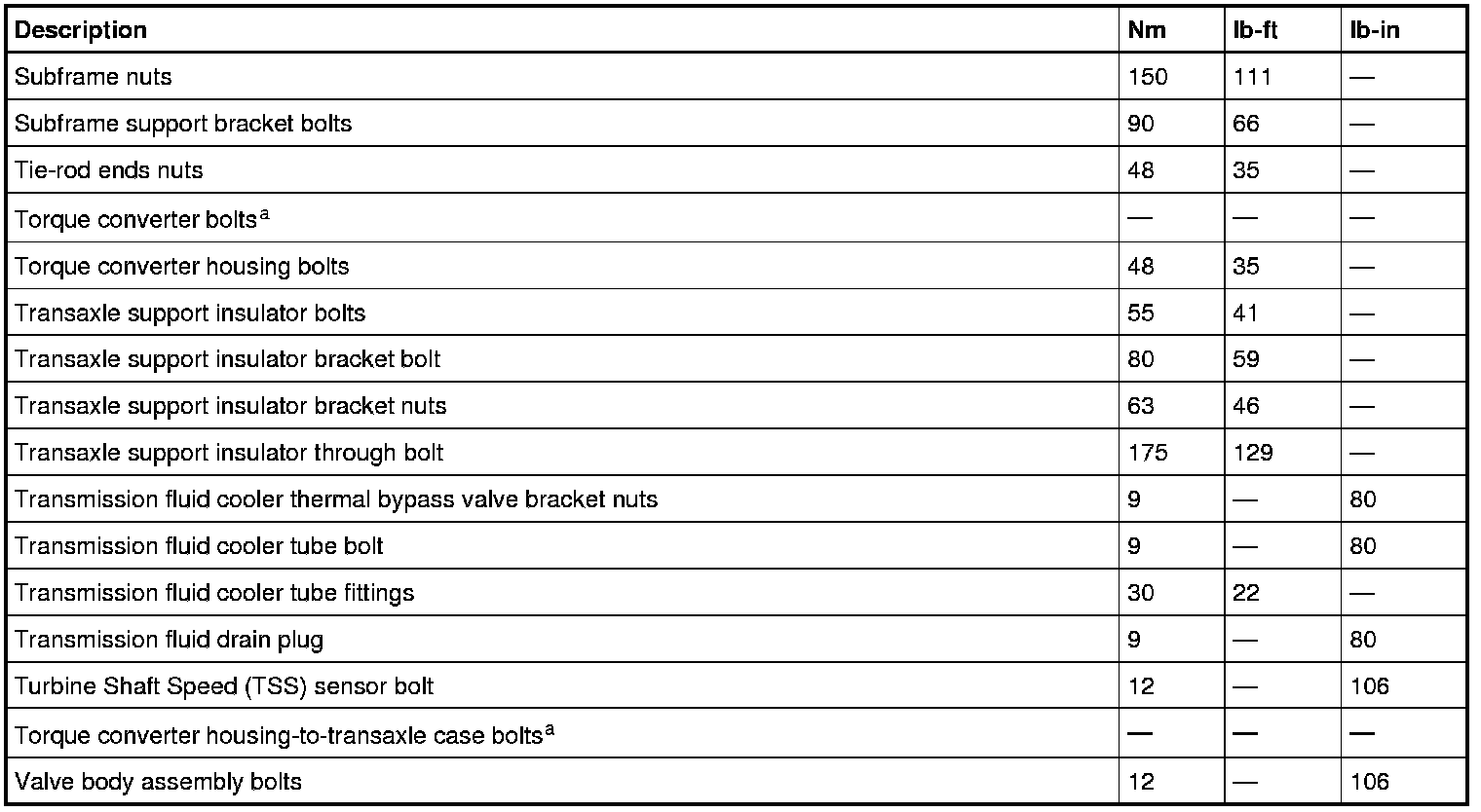 Torque Specifications