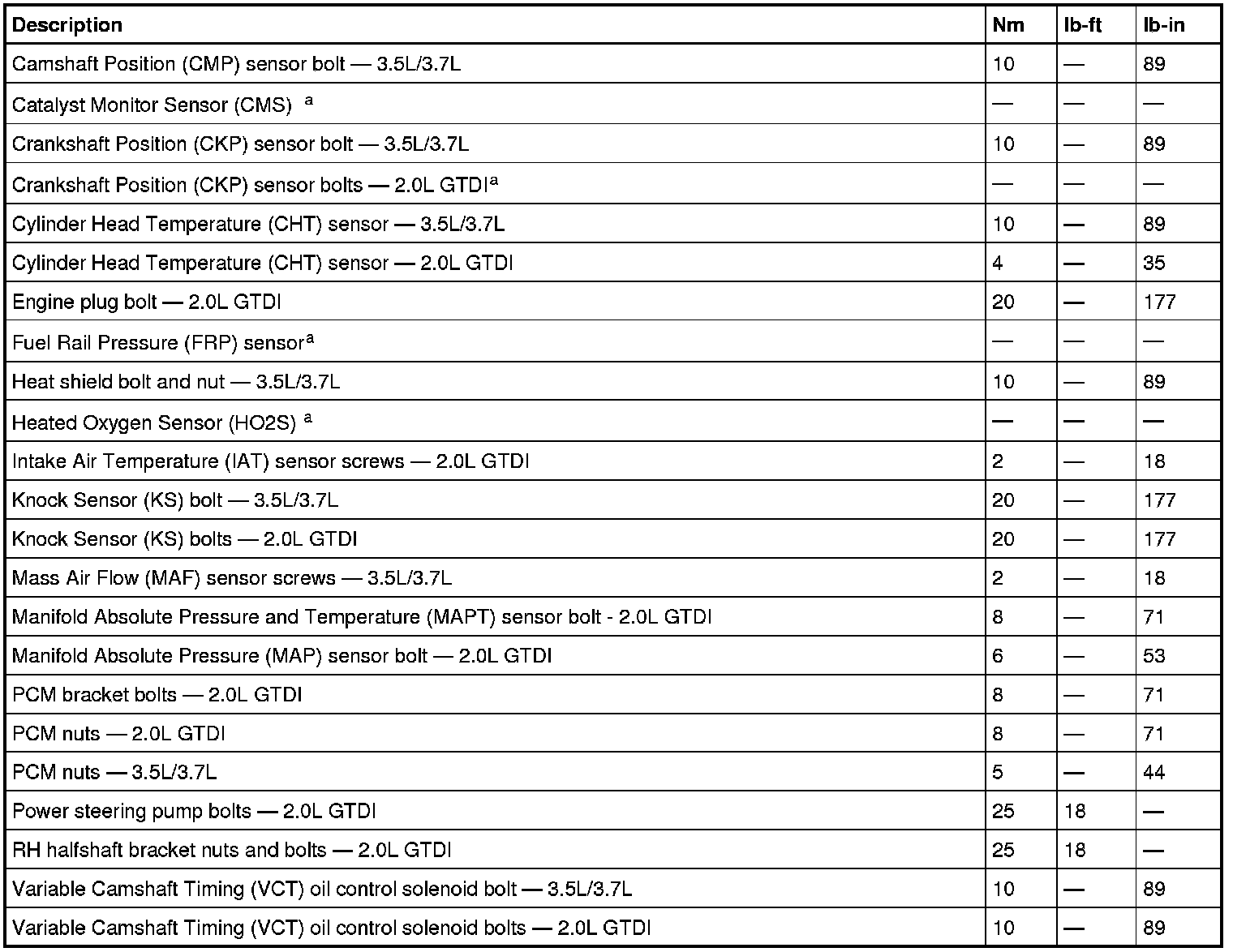 Torque Specifications