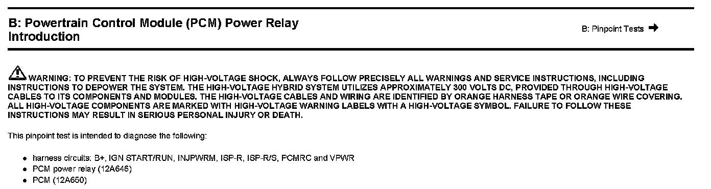 B: POWERTRAIN CONTROL MODULE (PCM) POWER RELAY