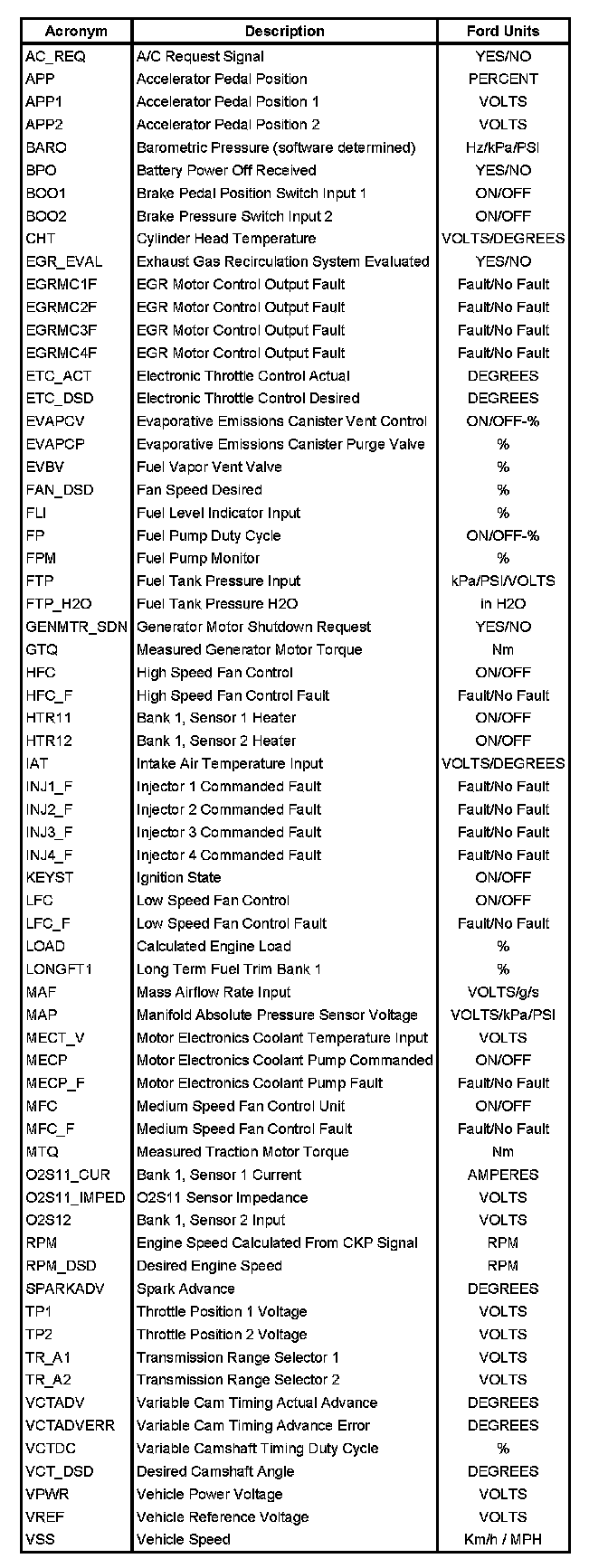 Note: This is not a complete list of Ford PIDs available. This is a list of Ford PIDs.