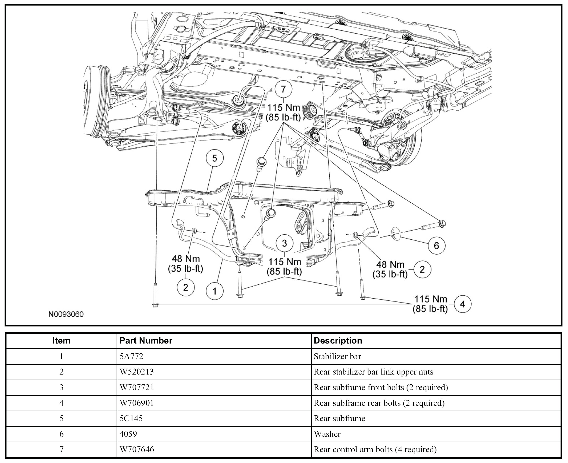 1. NOTICE: Suspension and subframe fasteners are critical parts because they affect performance of vital parts and systems and their failure can result in major service expense. A new part with the same part number must be installed if installation becomes necessary. Do not use a replacement part of lesser quality or substitute design. Torque values must be used as specified during reassembly to make sure of correct retention of these parts.