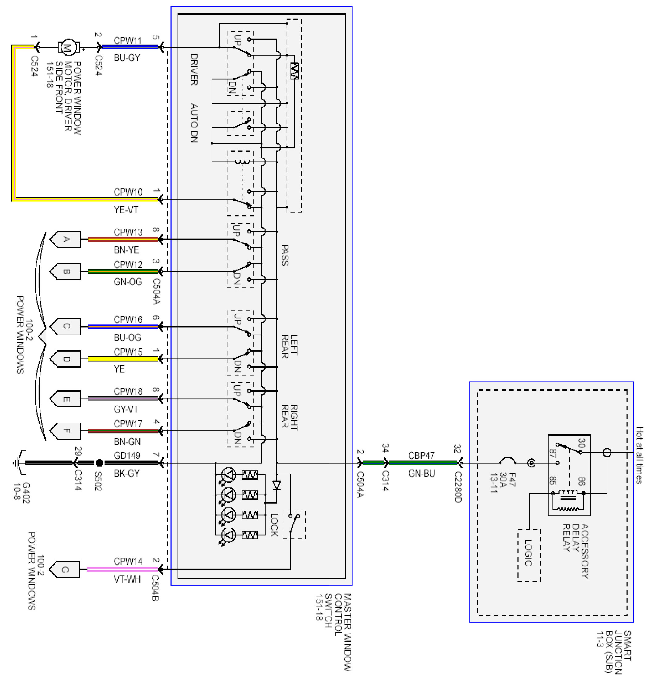 Home >> Ford >> 2012 >> Escape 2WD L4-2.5L >> Repair and Diagnosis >> Diagrams >> Electrical Diagrams >> Windows