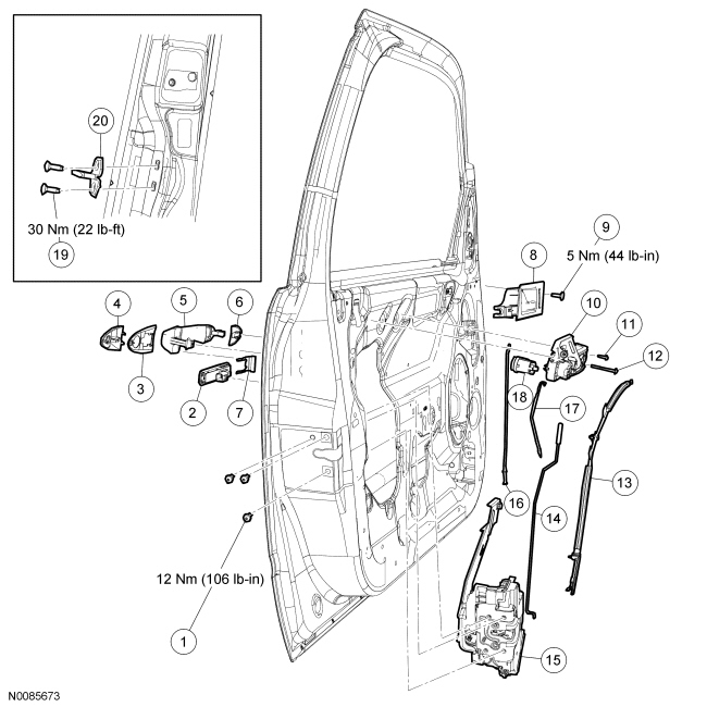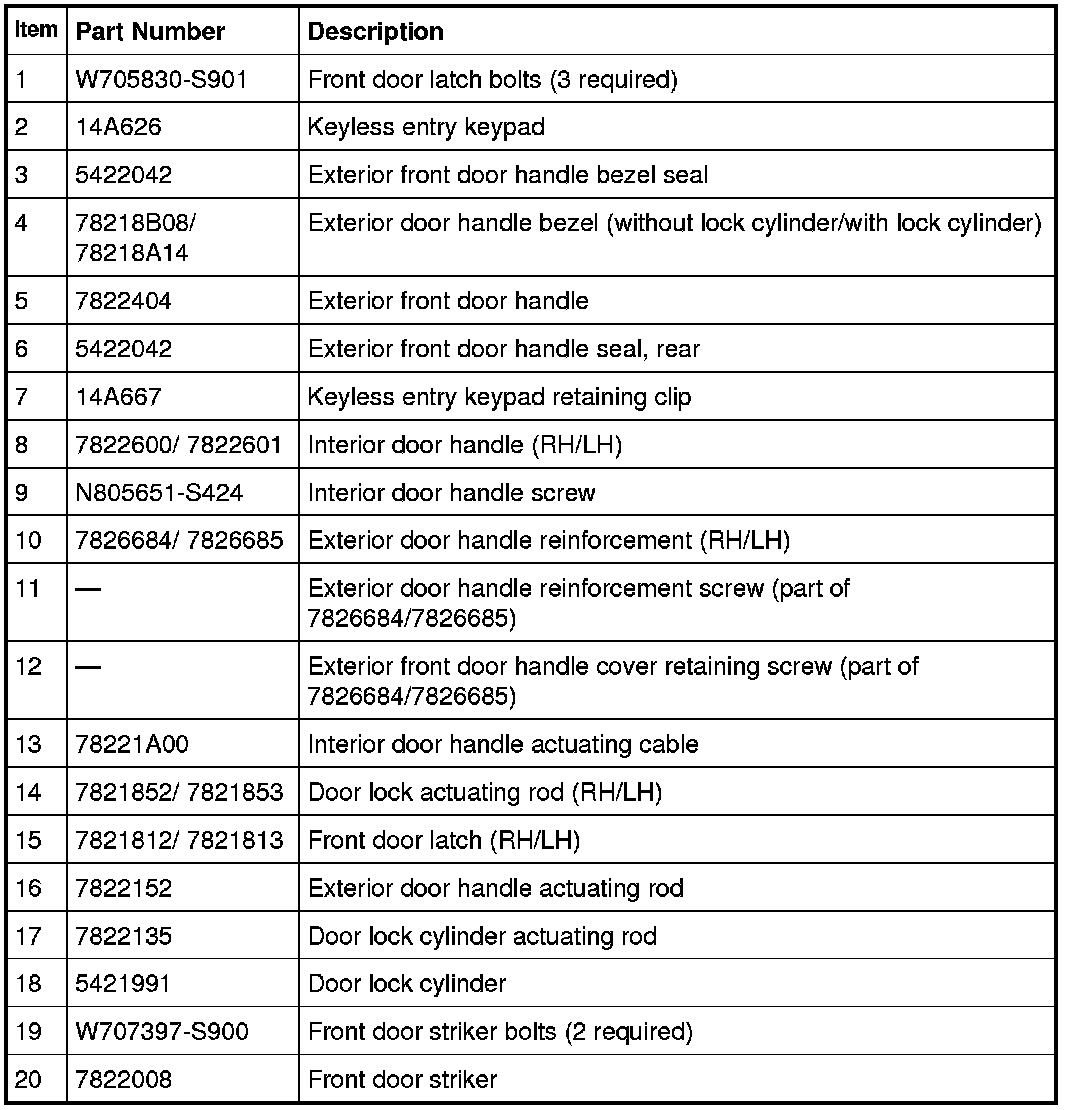 Front Door Handles, Locks and Latches - Exploded View