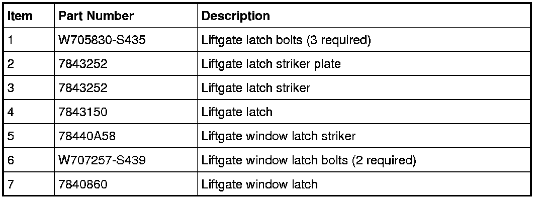Liftgate Handle, Lock and Latch - Exploded View