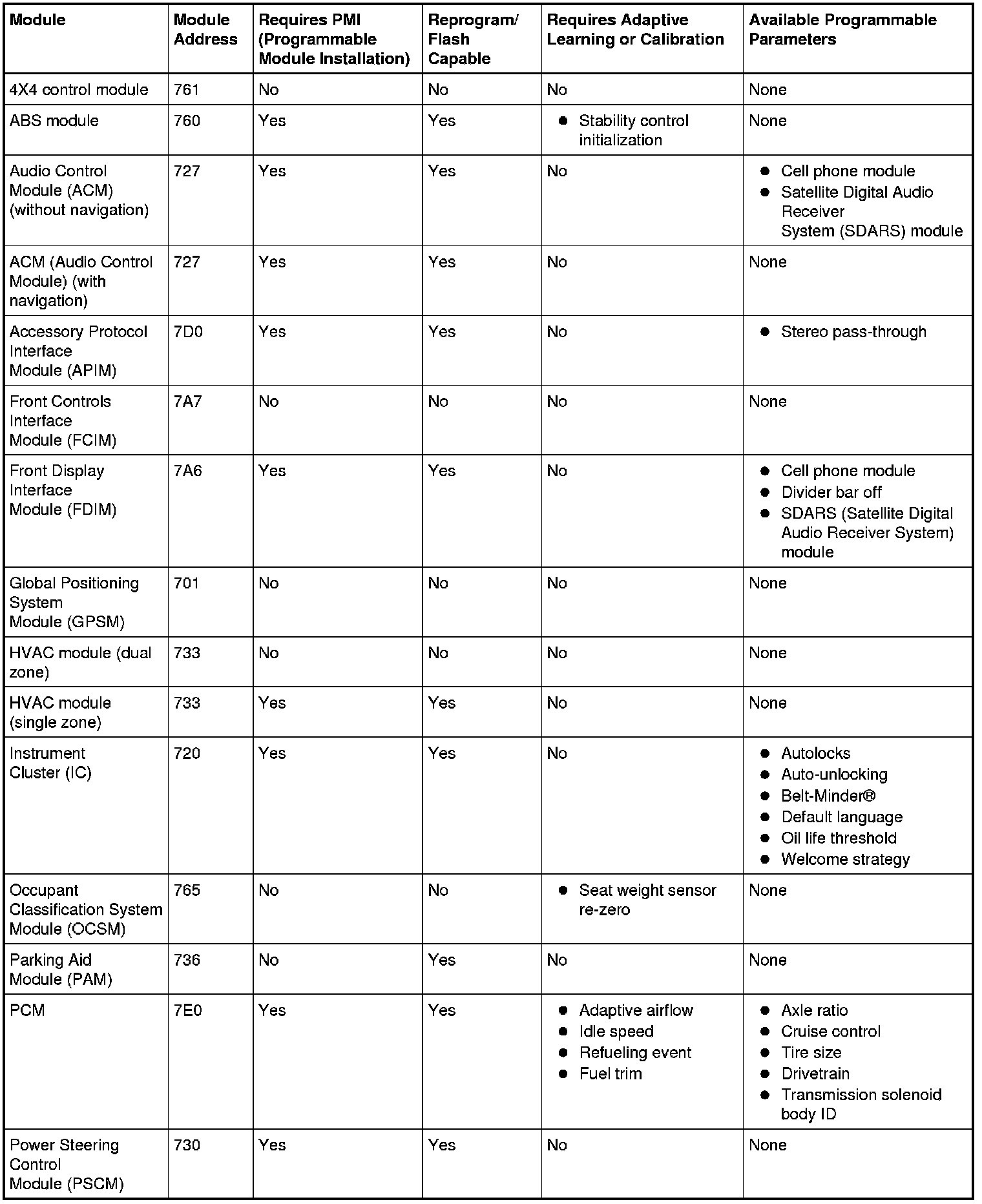 Programmable parameters are customer preference items that may be modified by the dealer via scan tool or in some cases modified by the customer following a procedure listed in the vehicle Owner's Literature. While many configuration options may exist for a module, only a few of these options are programmable parameters.