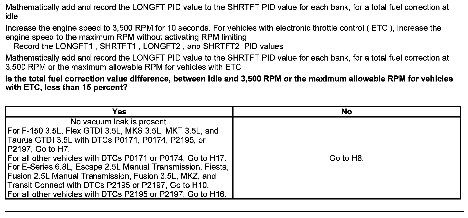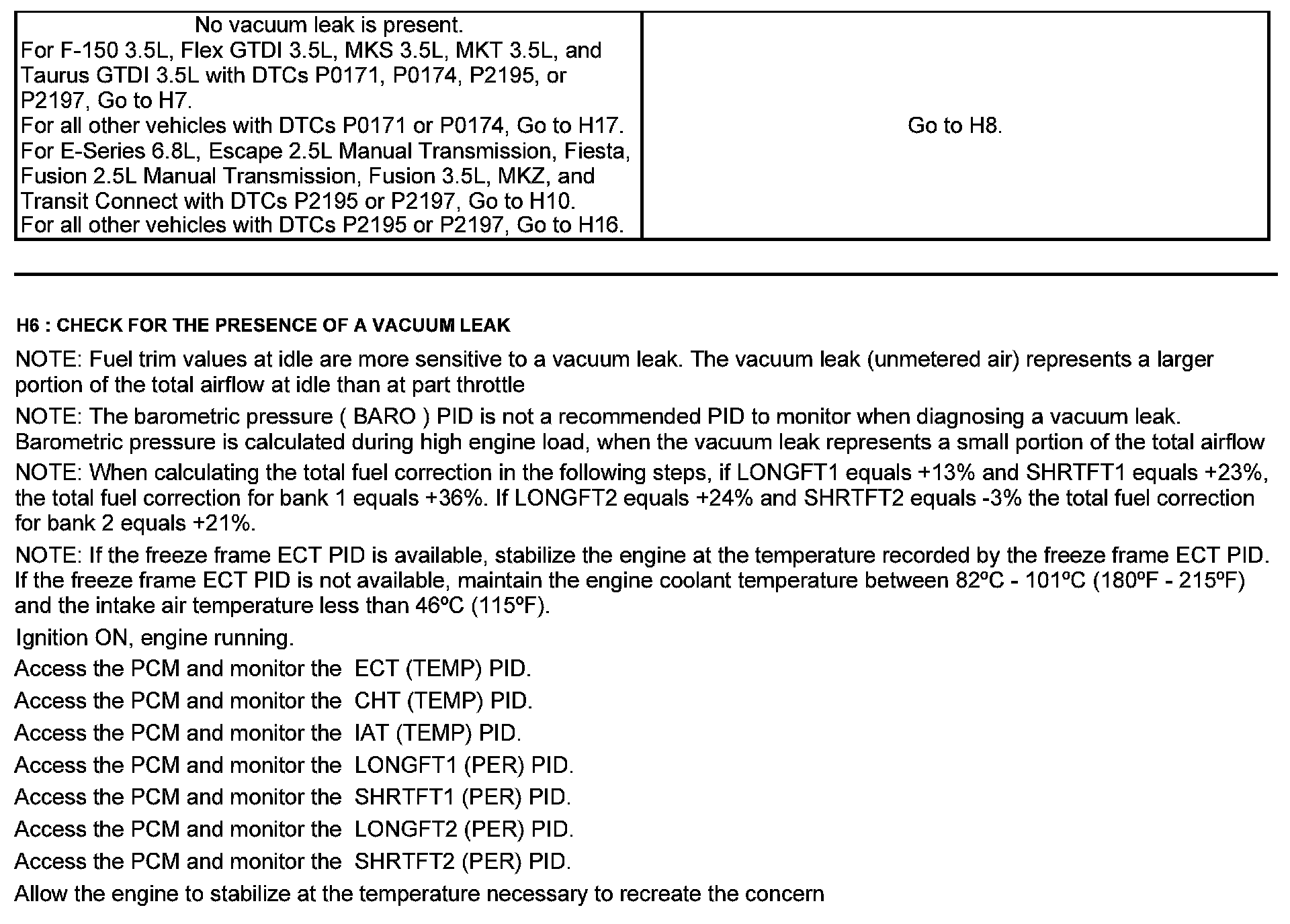 Home >> Ford >> 2012 >> Escape 2WD L4-2.5L >> Repair and Diagnosis >> Powertrain Management >> Computers and Control Systems >> Testing and Inspection >> Pinpoint Tests >> Test H: Fuel Control >> Automatic Transmission >> Part 1