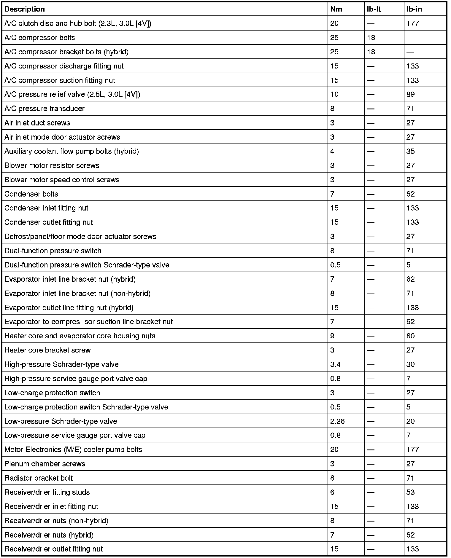 Torque Specifications