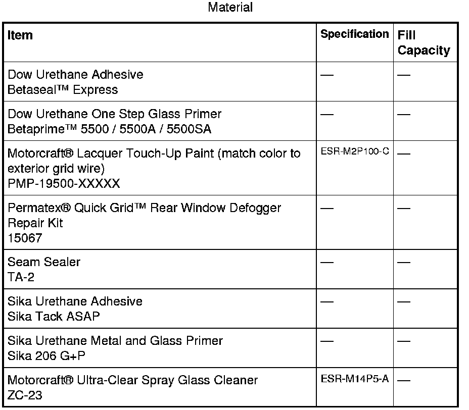 Home >> Ford >> 2012 >> Escape 2WD L4-2.5L >> Repair and Diagnosis >> Windows and Glass >> Specifications >> Fluid Type Specifications