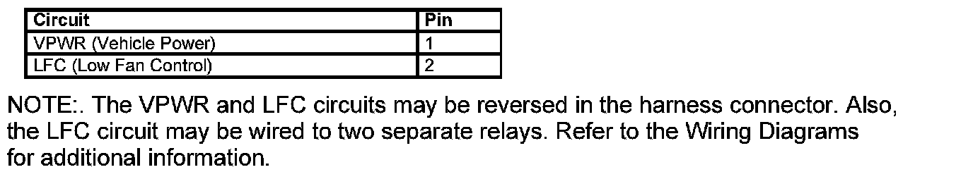 Low Fan Control (LFC) Relay Connector