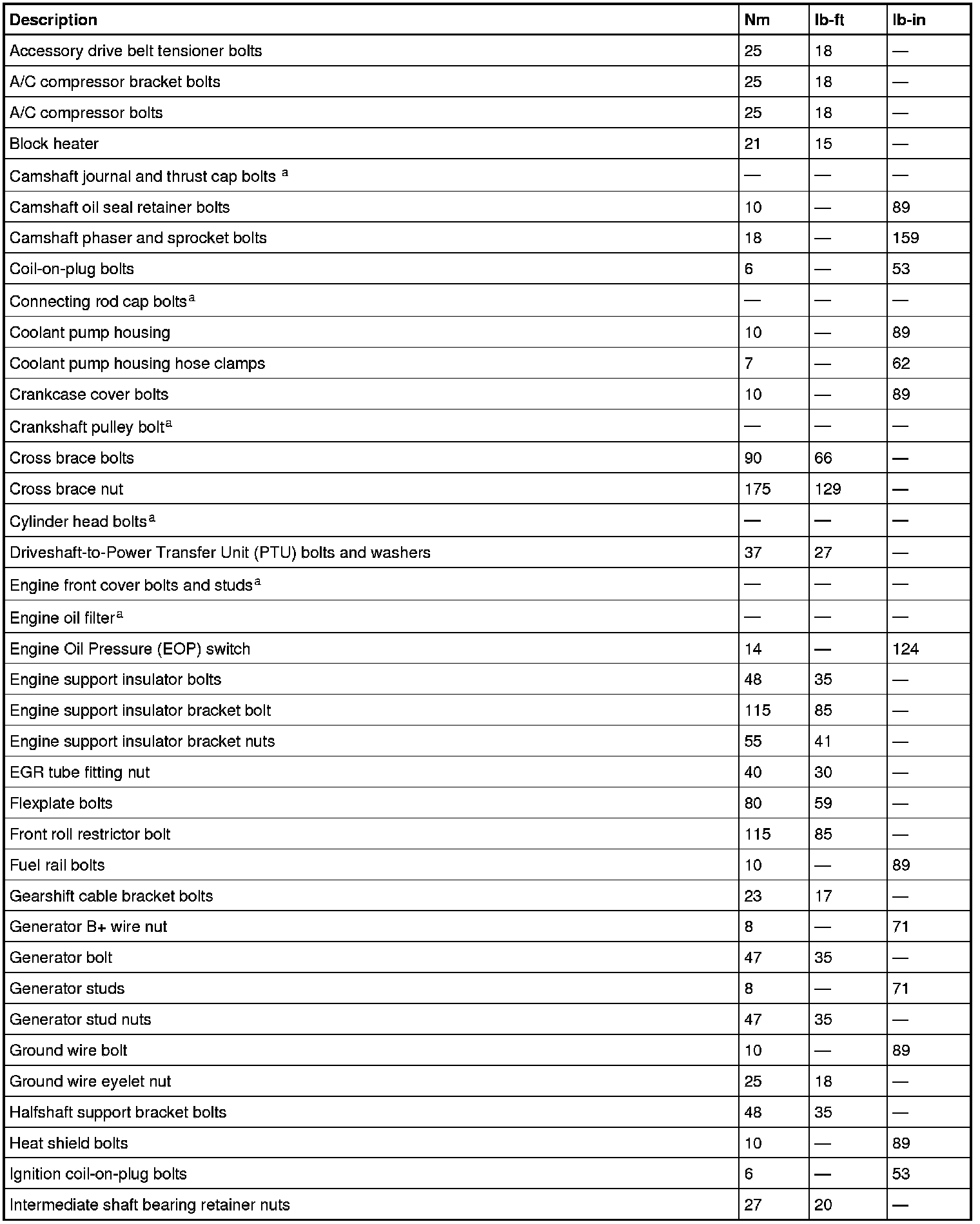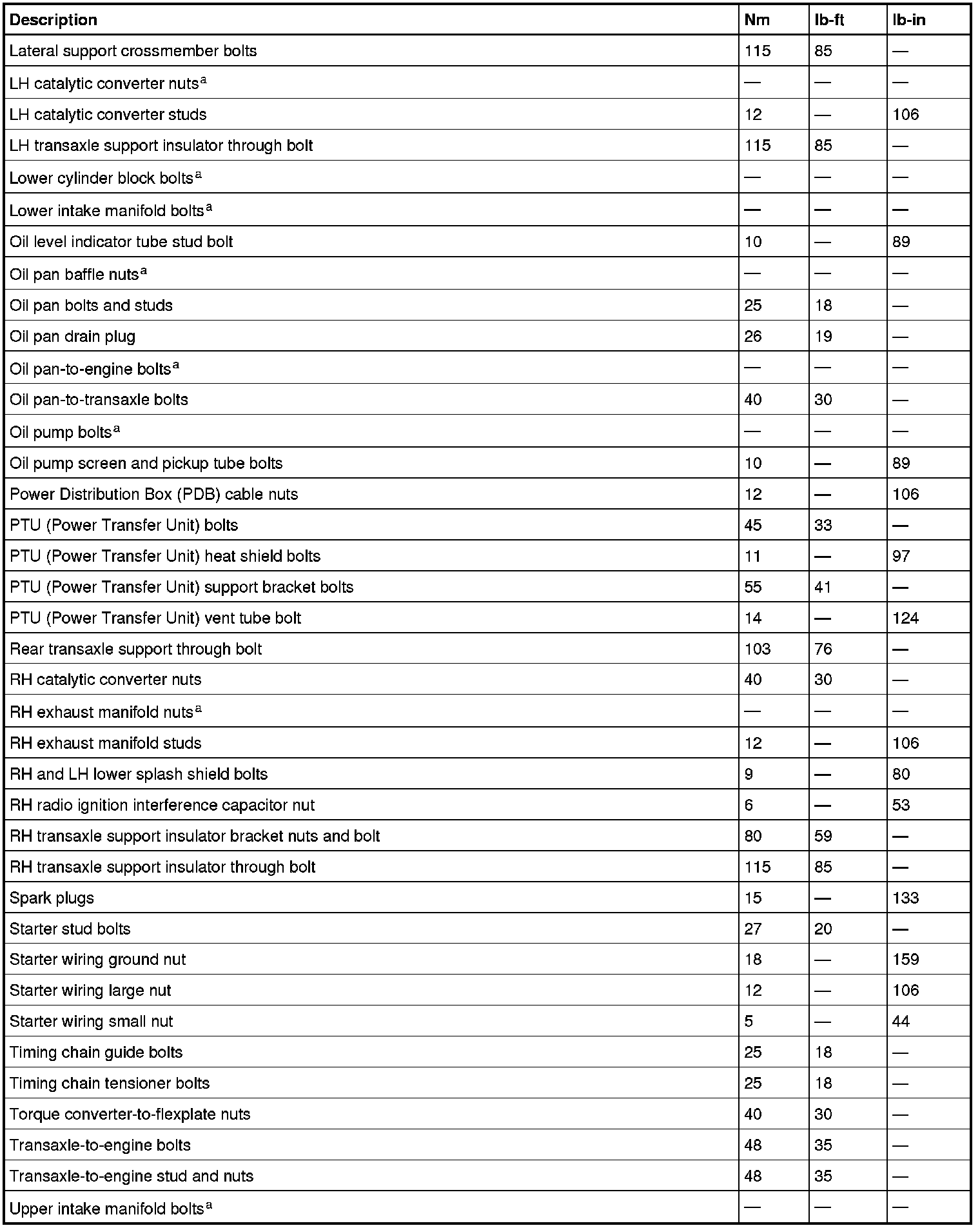 Torque Specifications