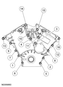 Position the engine front cover and install the bolts.