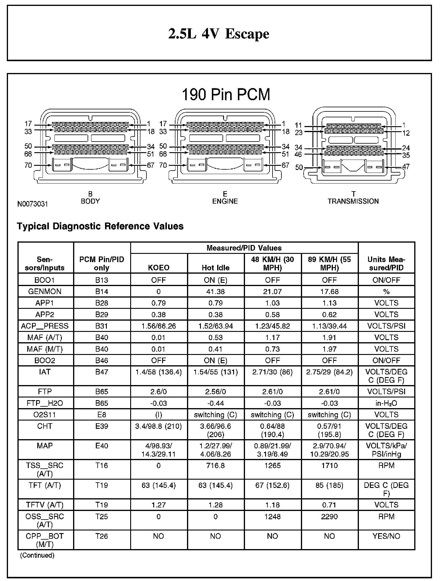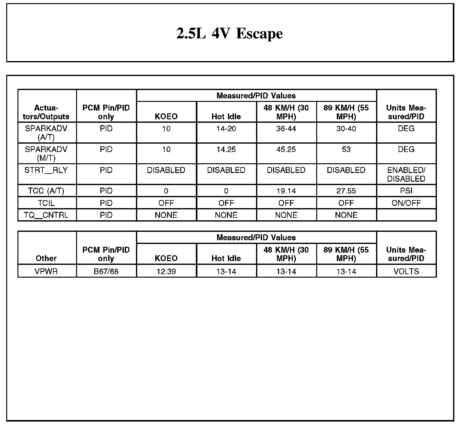 Home >> Ford >> 2012 >> Escape 4WD L4-2.5L >> Repair and Diagnosis >> Powertrain Management >> Computers and Control Systems >> Testing and Inspection >> Scan Tool Testing and Procedures >> Typical Diagnostic Reference Values