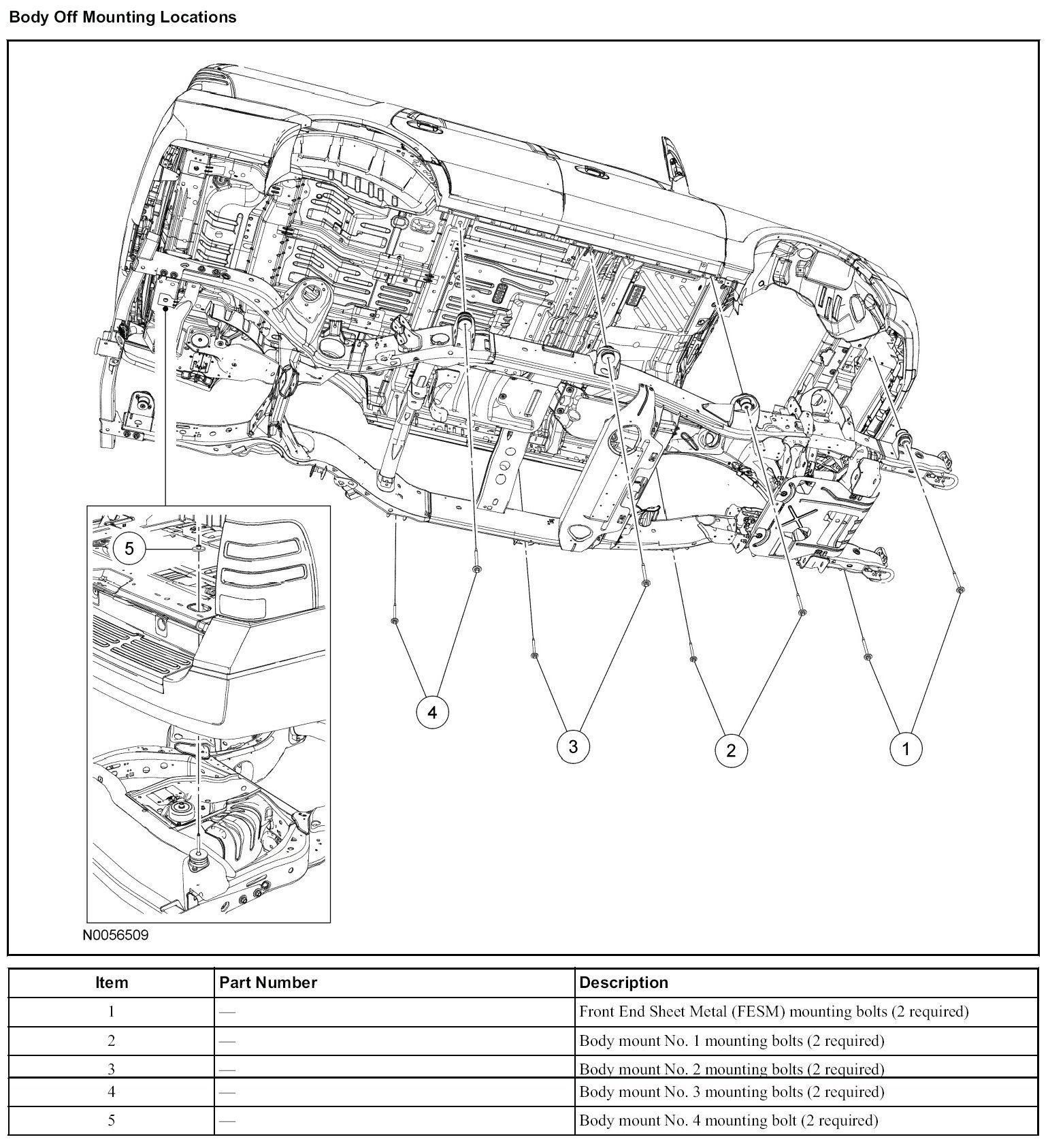 - To install, tighten the FESM body mount No. 2 and No. 3 to 80 Nm (59 lb-ft).