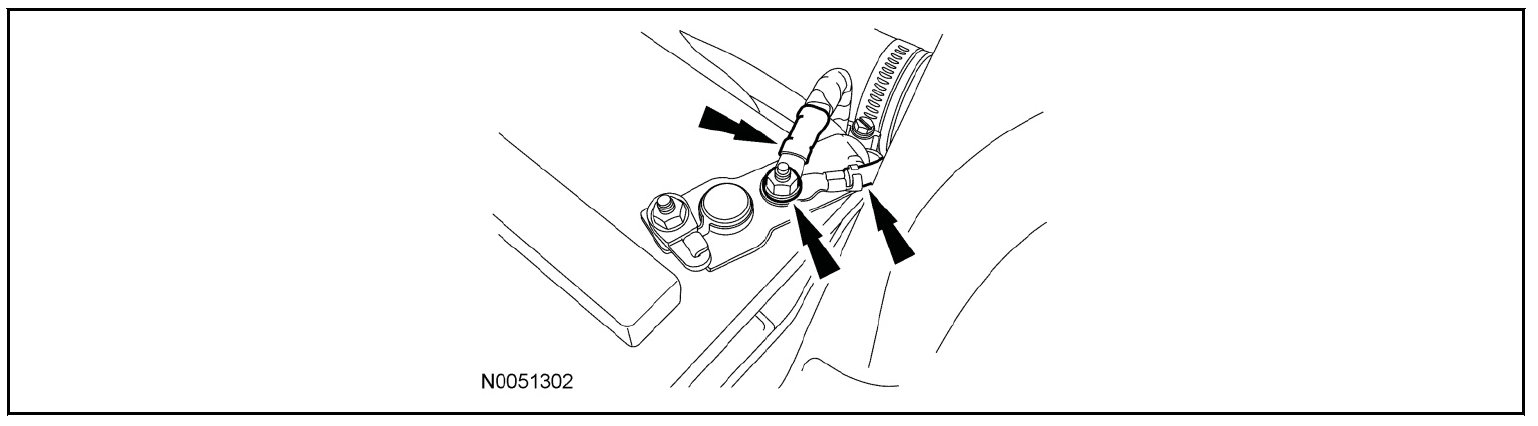 4. Remove the nut and separate the leads from the battery positive cable and position aside.
