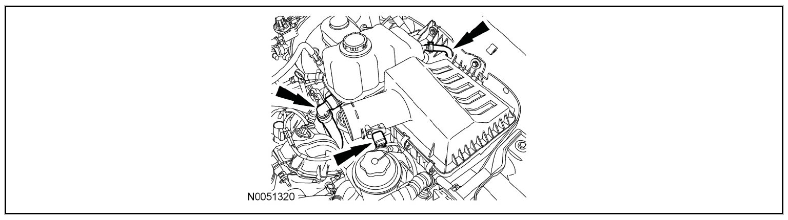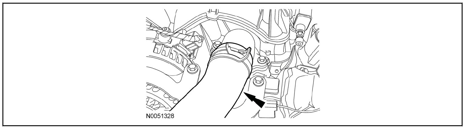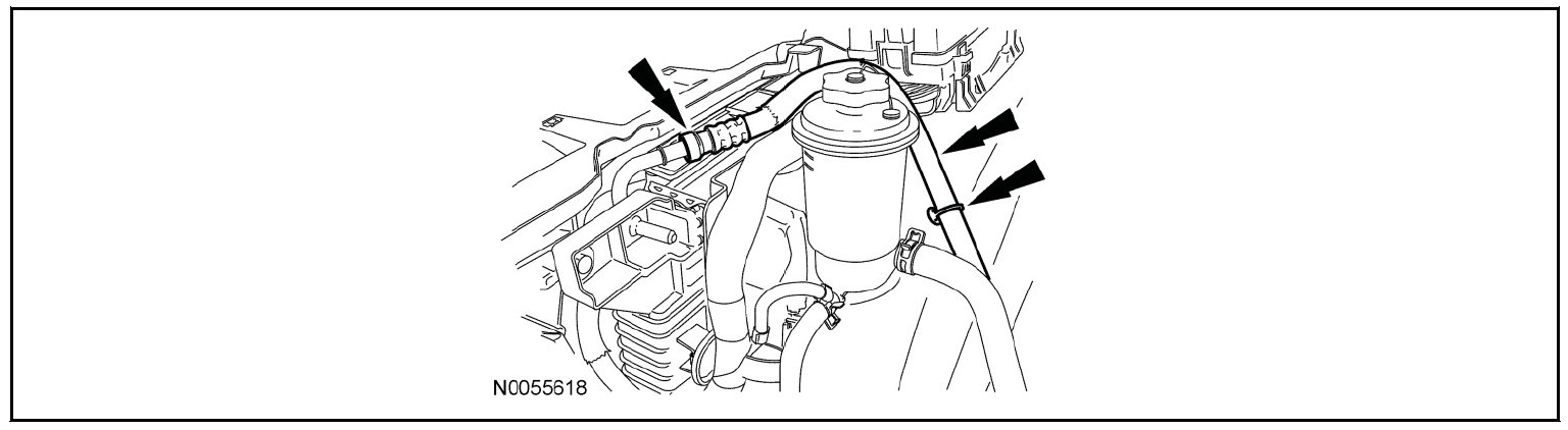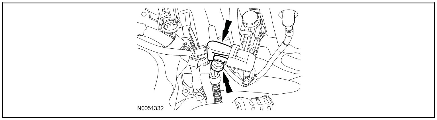 - Unclip the RH hose from the retainers on the side of the degas bottle/air cleaner module.