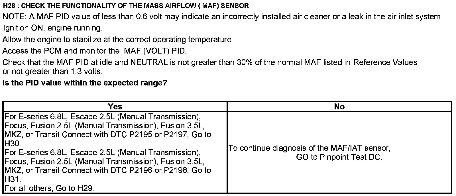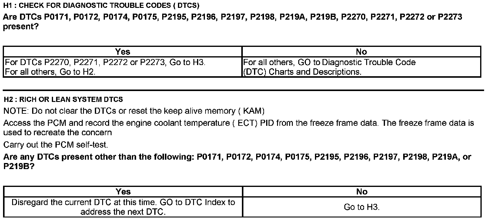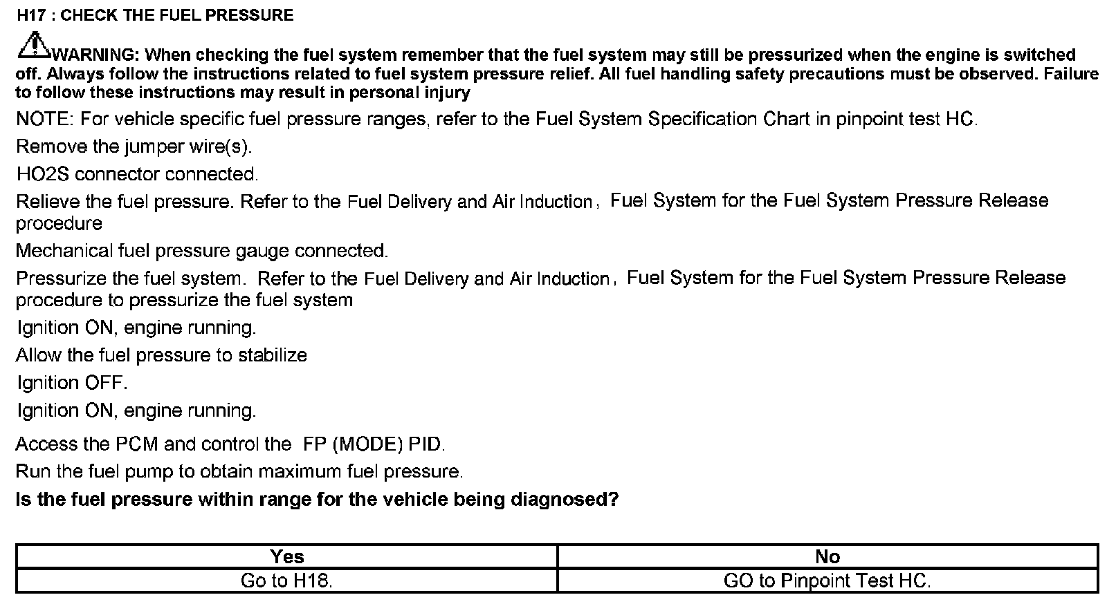 Home >> Ford >> 2012 >> Expedition 2WD V8-5.4L >> Repair and Diagnosis >> Powertrain Management >> Computers and Control Systems >> Testing and Inspection >> Pinpoint Tests >> Test H: Fuel Control
