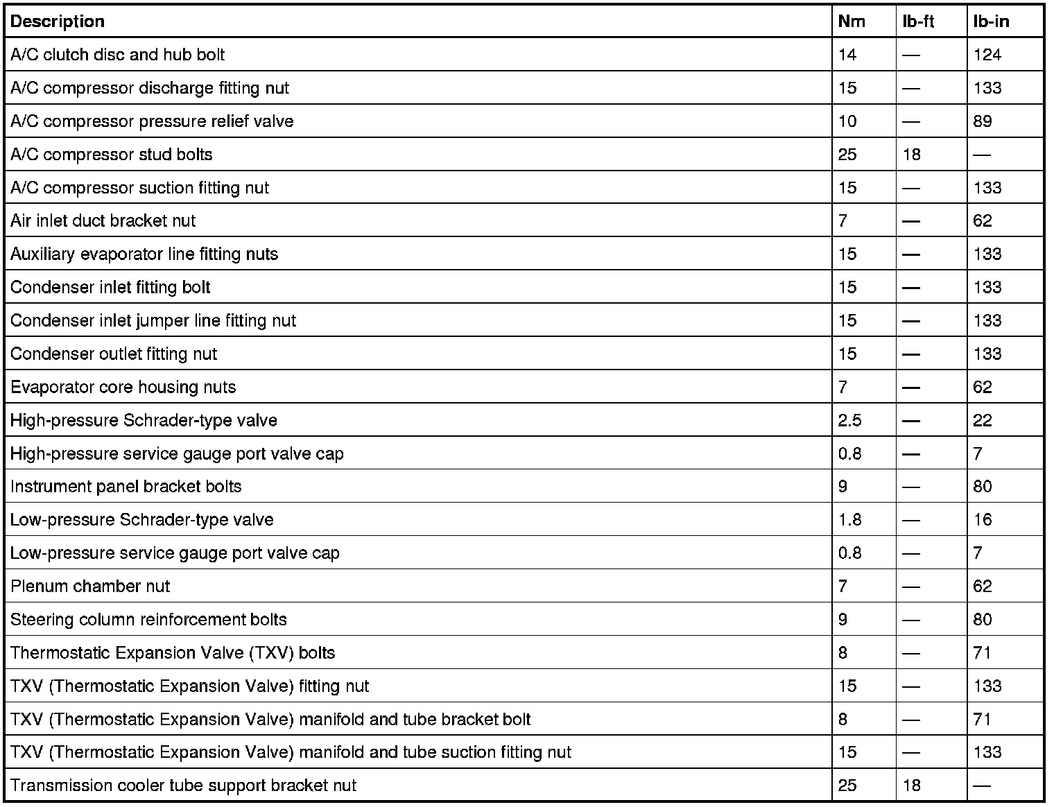 Torque Specifications