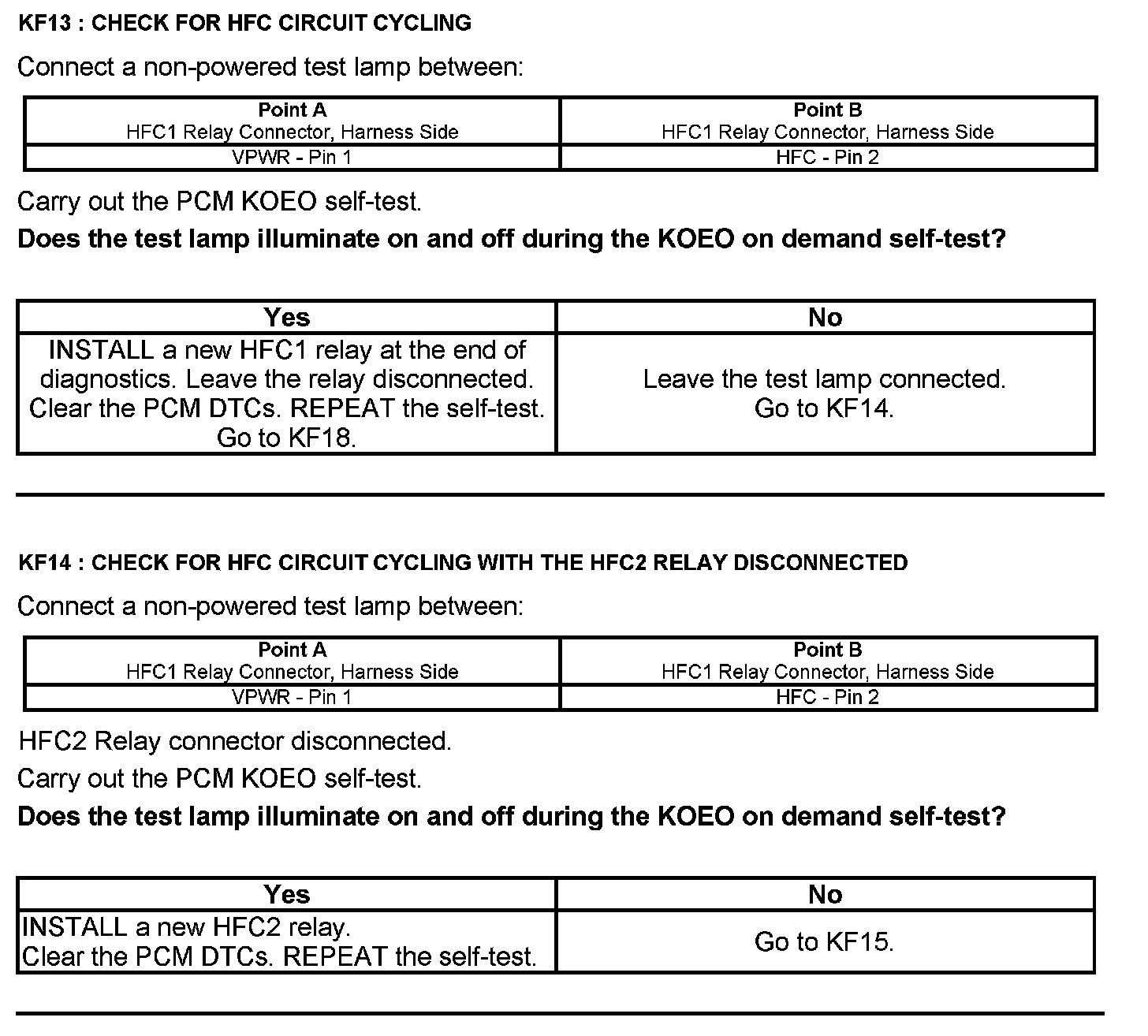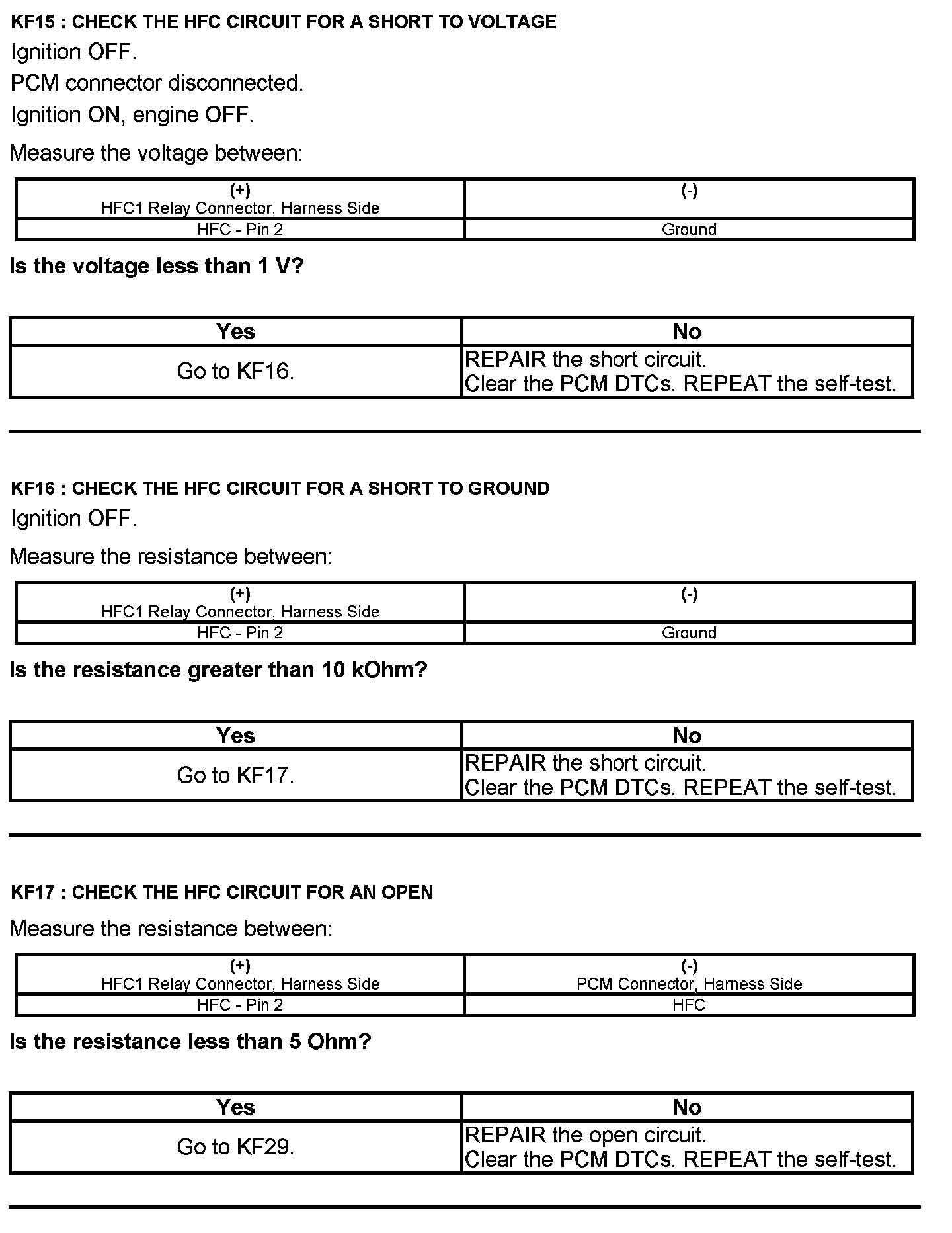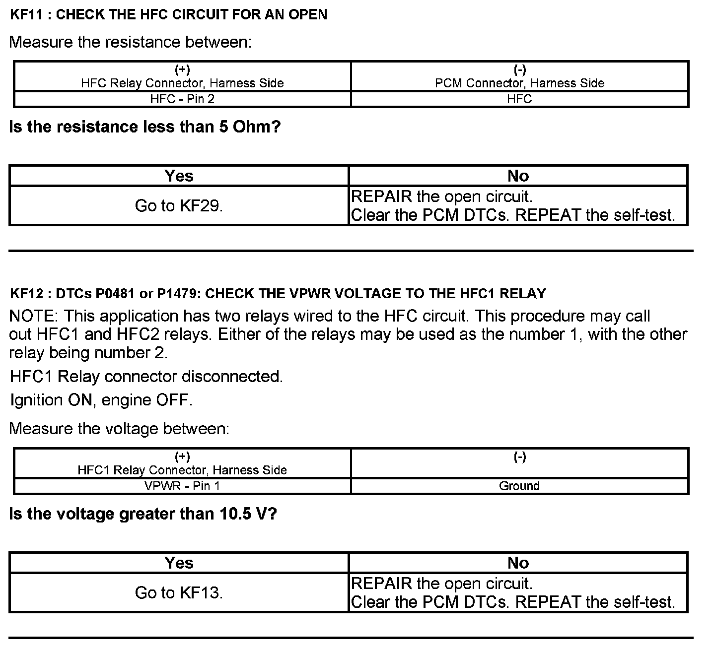 NOTE: The VPWR and HFC circuits may be reversed in the harness connector. Also, the HFC circuit may be wired to two separate relays. Refer to the Wiring Diagrams for additional information.