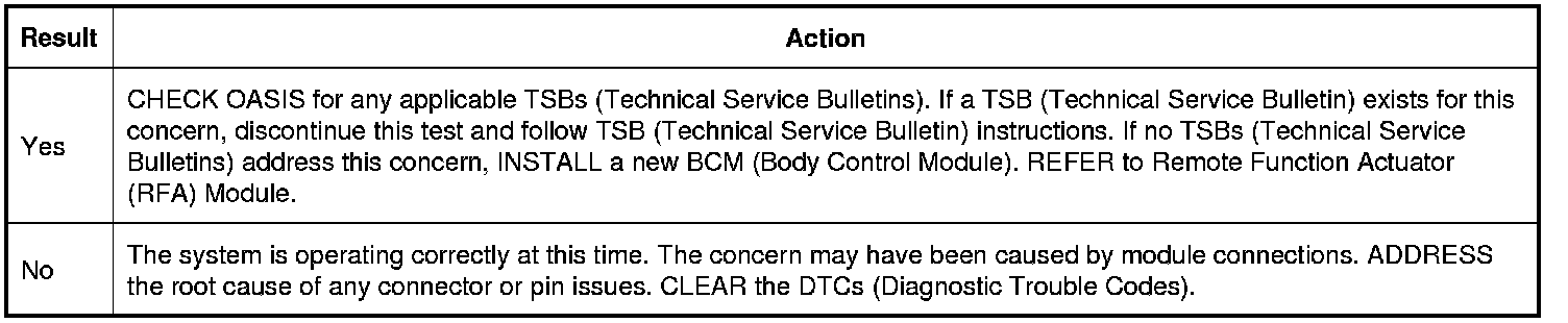 10. CHECK FOR CORRECT RFA (Remote Function Actuator) MODULE OPERATION