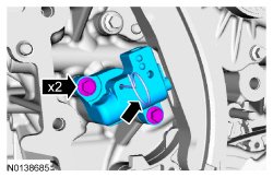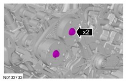 27. Install the 2 new LH (Left Hand) VCT (Variable Camshaft Timing) bolts and tighten in 4 stages: