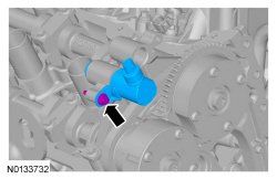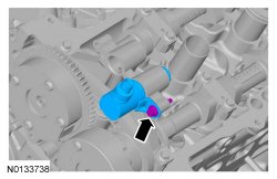 37. NOTICE: Do not use excessive force when installing the VCT (Variable Camshaft Timing) oil control solenoid. Damage to the mega cap could cause the cylinder head to be inoperable. If difficult to install the VCT (Variable Camshaft Timing) oil control solenoid, inspect the bore and VCT (Variable Camshaft Timing) oil control solenoid to ensure there are no burrs, sharp edges or contaminants present on the mating surface. Only clean the external surfaces as necessary.
