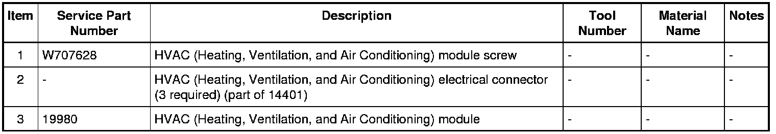 1. Remove the HVAC (Heating, Ventilation, and Air Conditioning) module screw.