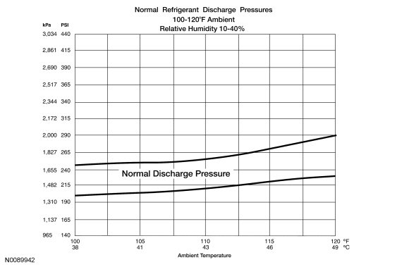 8. Determine if the discharge pressure falls within the normal operating limits using the Normal Refrigerant Discharge Pressures chart.