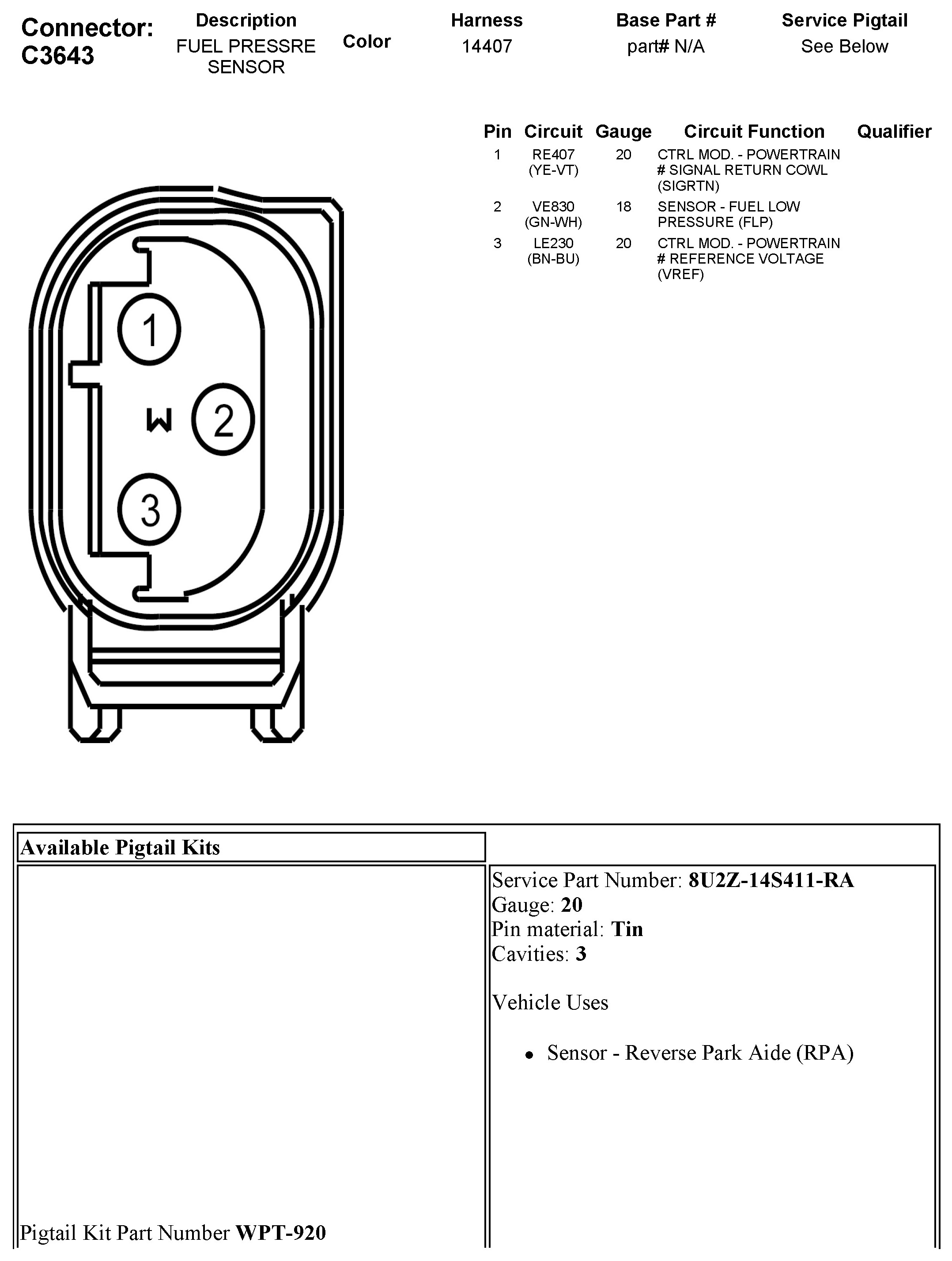 Fuel Pressure Sensor: Diagrams