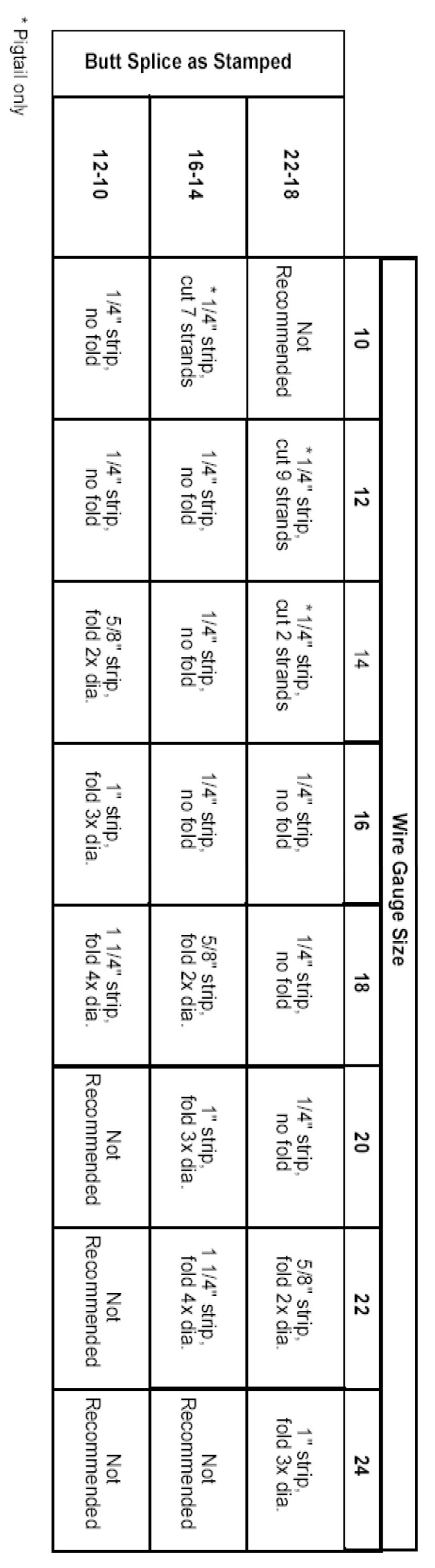 Recommended splicing method - Crimp (For 10-22 AWG Diameter Wire to Like Wire Diameter)