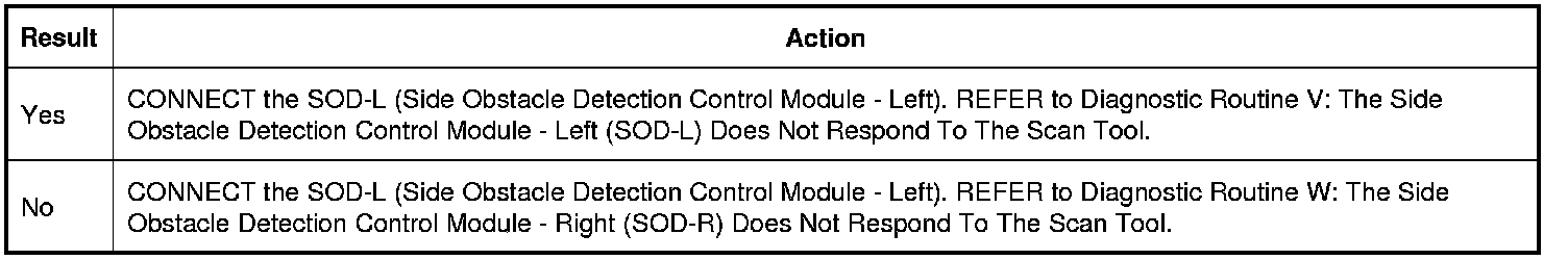 17. CHECK FOR RESTORED COMMUNICATION WITH THE SOD-L (Side Obstacle Detection Control Module - Left) DISCONNECTED