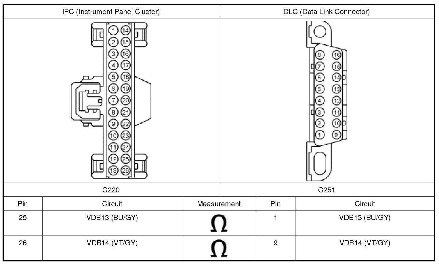 9. CHECK THE I-CAN (Infotainment Controller Area Network) CIRCUITS BETWEEN THE IPC (Instrument Panel Cluster) AND THE DLC (Data Link Connector) FOR AN OPEN