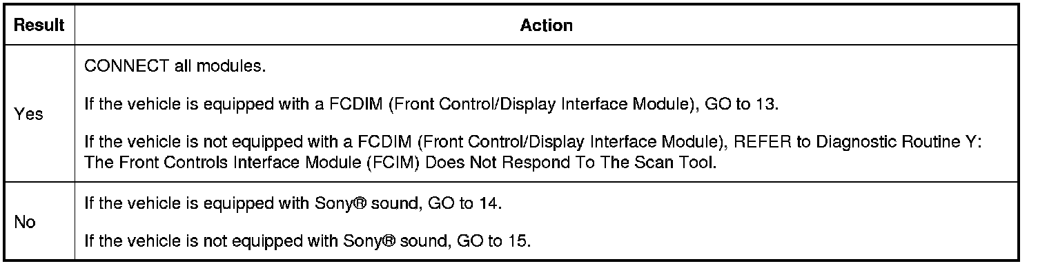 13. CHECK FOR RESTORED COMMUNICATION WITH THE FCDIM (Front Control/Display Interface Module) DISCONNECTED