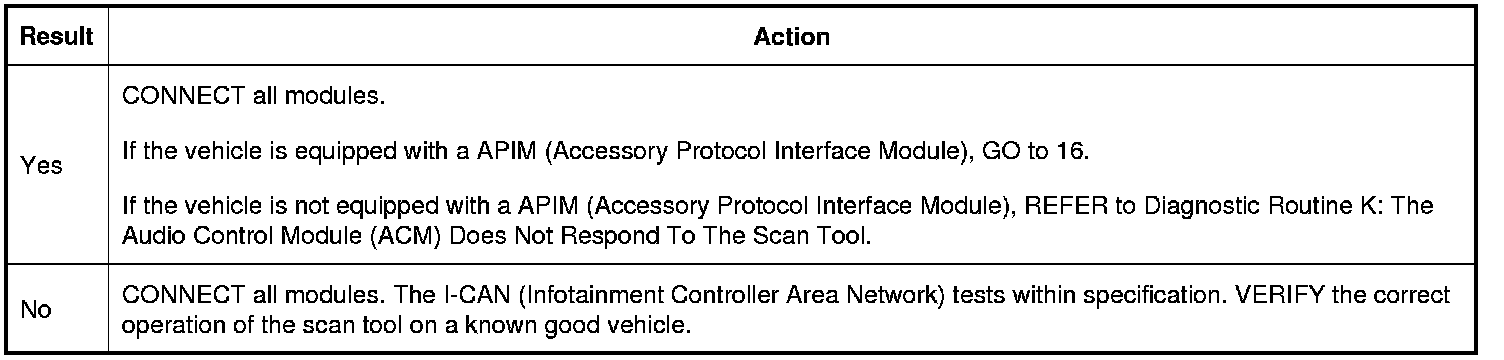 15. CHECK FOR RESTORED COMMUNICATION WITH THE APIM (Accessory Protocol Interface Module) AND ACM (Audio Control Module) DISABLED
