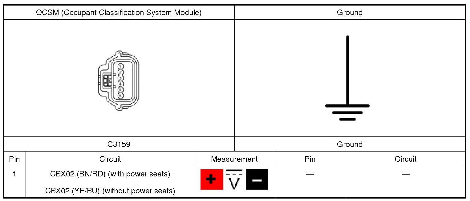 2. CHECK THE OCSM (Occupant Classification System Module) GROUND CIRCUIT FOR AN OPEN