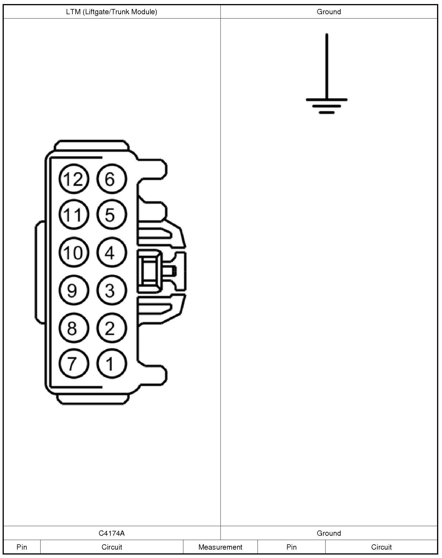 1. Disconnect: LTM (Liftgate/Trunk Module) C4174B.