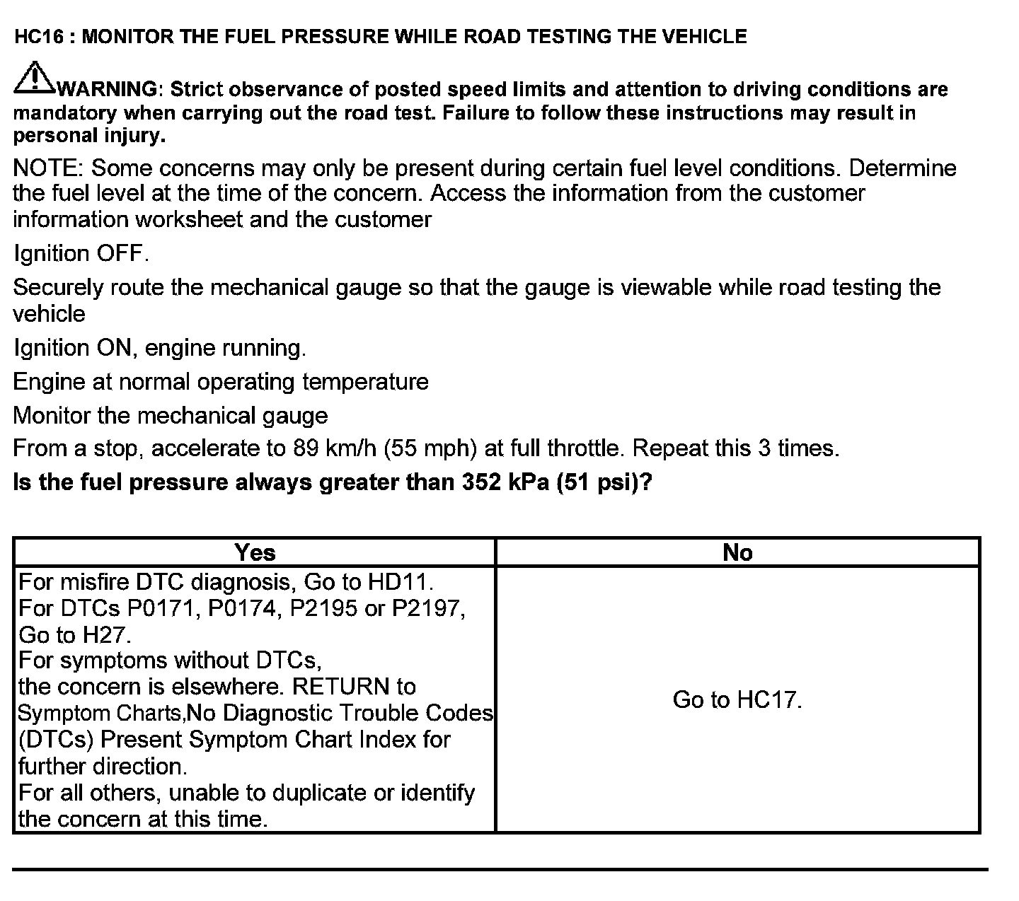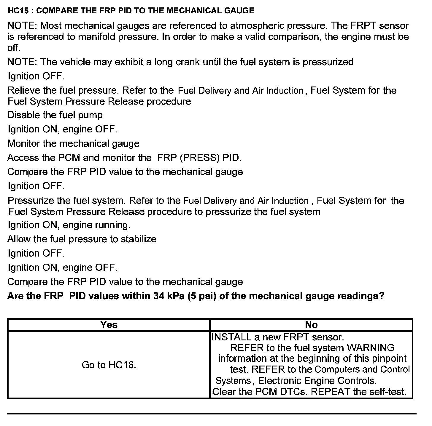 Test HC: Fuel Delivery System