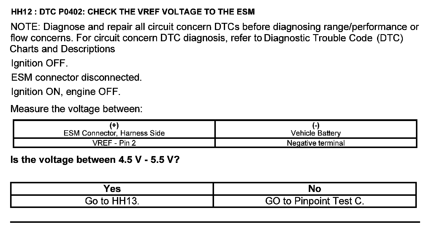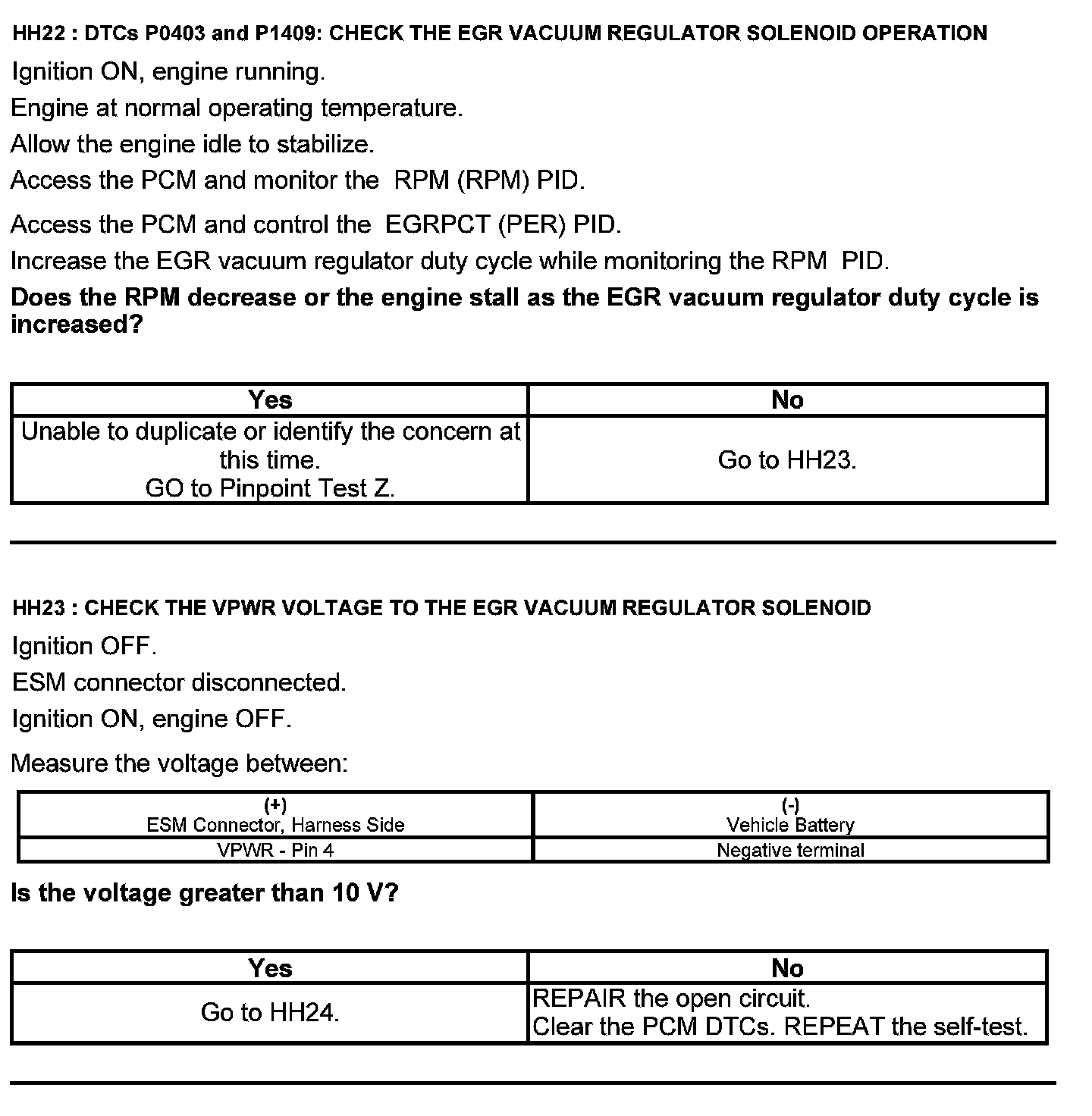 Home >> Ford >> 2012 >> Explorer AWD V6-3.5L >> Repair and Diagnosis >> Powertrain Management >> Computers and Control Systems >> Testing and Inspection >> Pinpoint Tests >> Test HH: Exhaust Gas Recirculation System Module (ESM)
