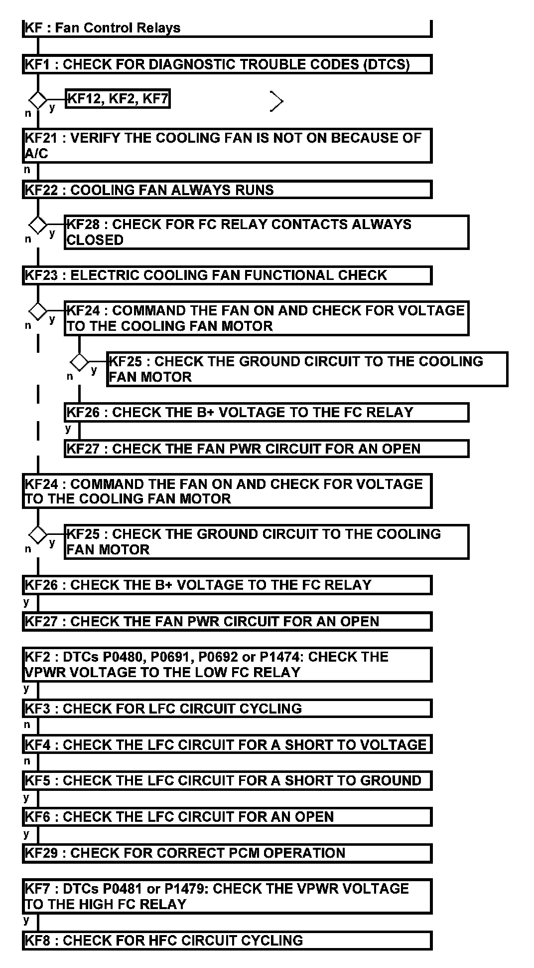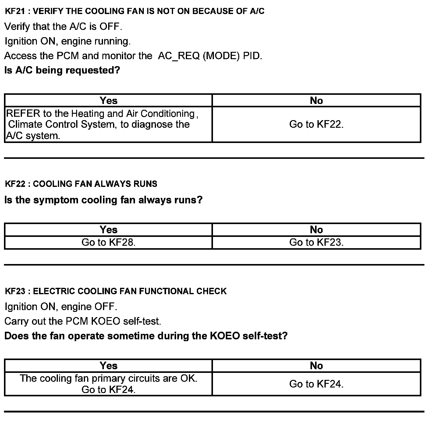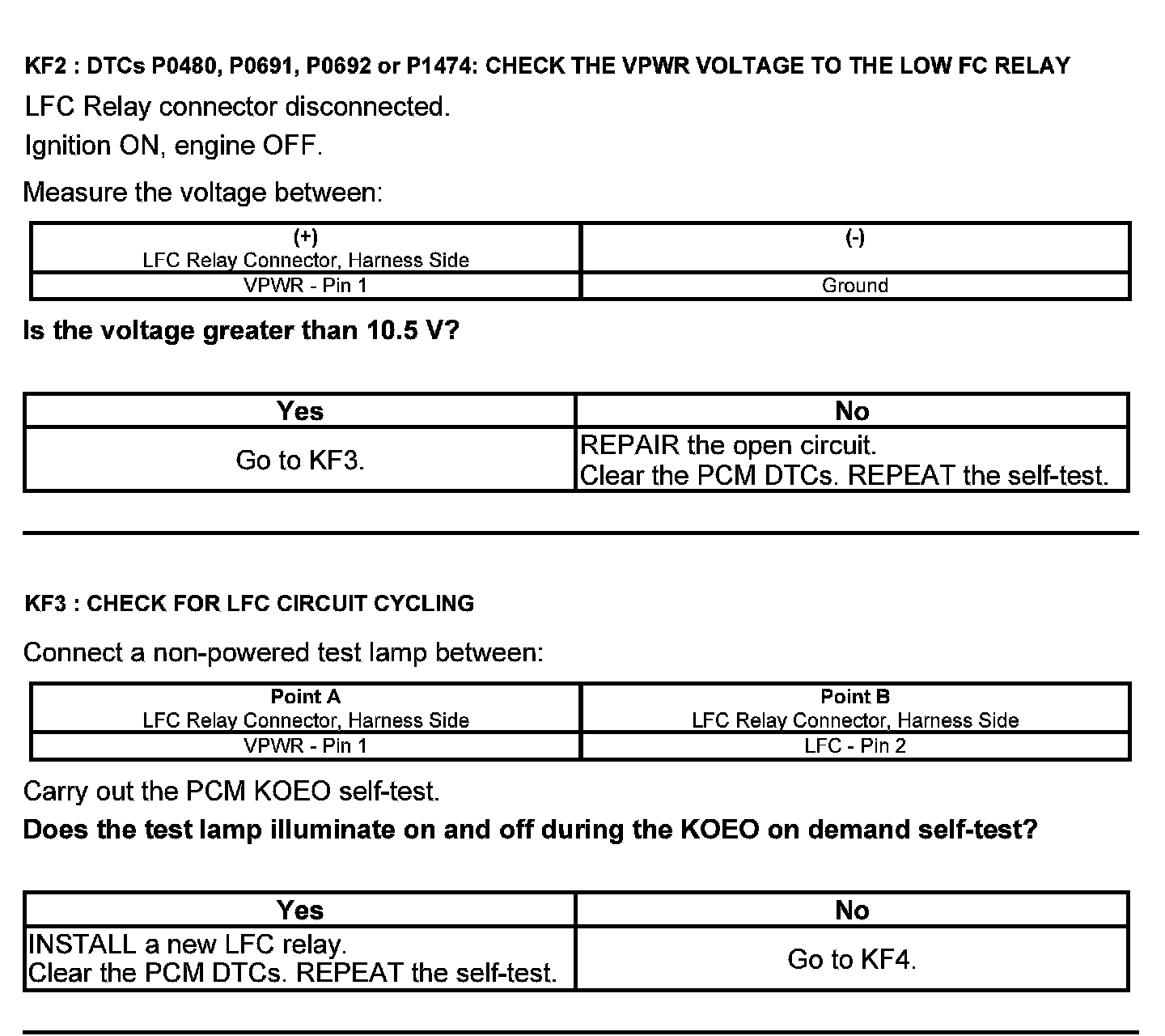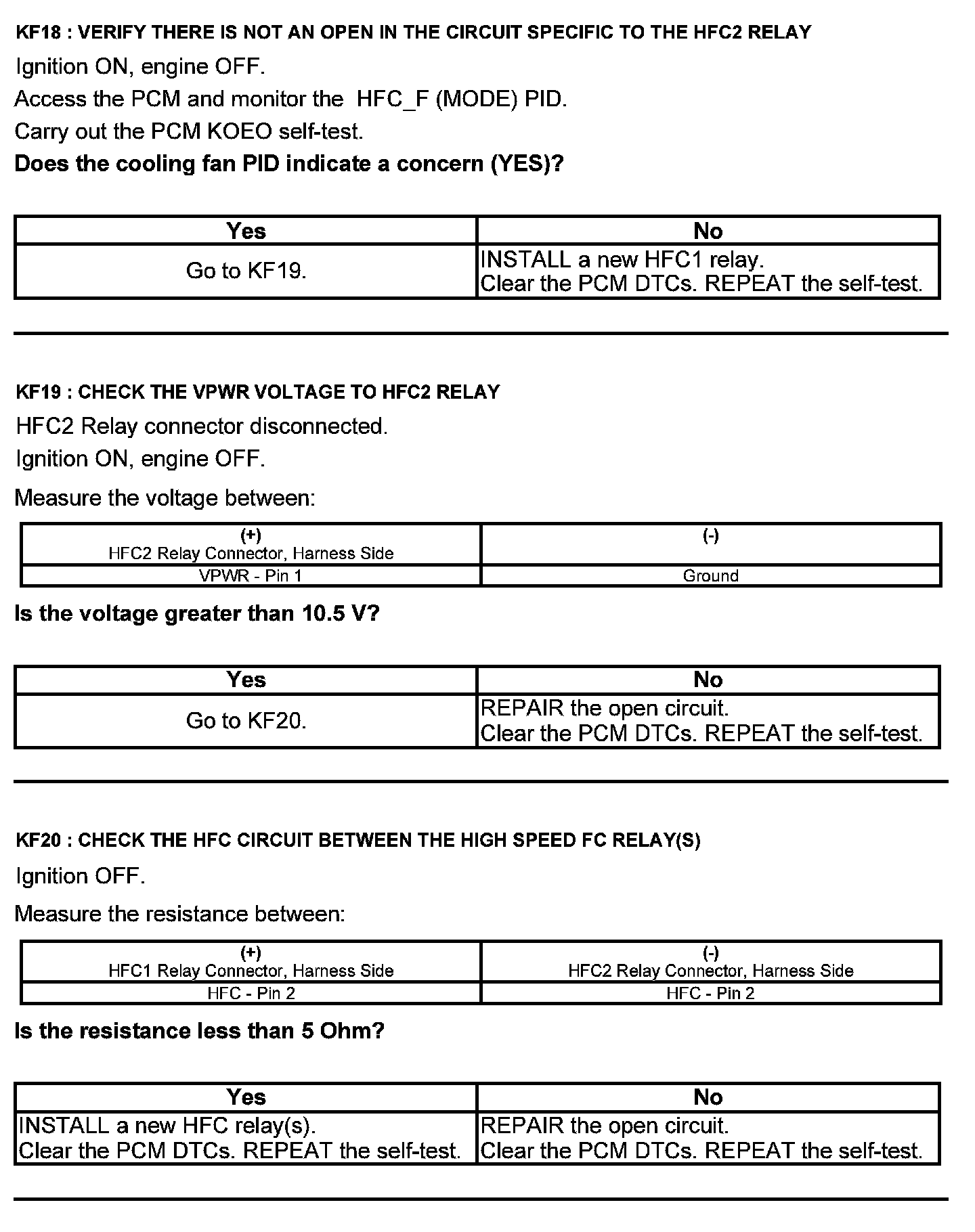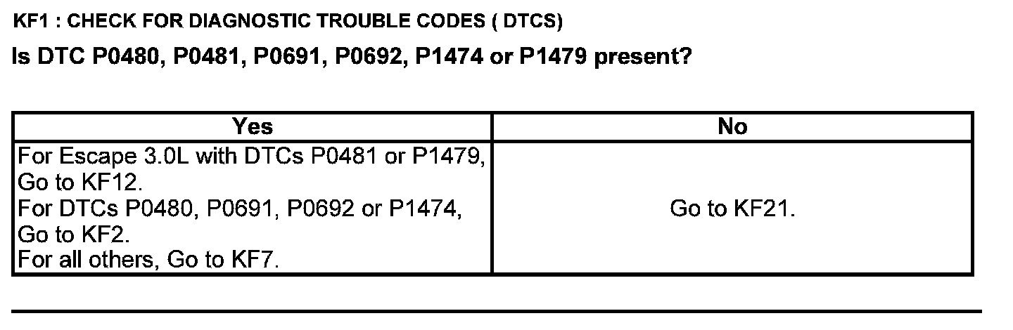 Home >> Ford >> 2012 >> Explorer AWD V6-3.5L >> Repair and Diagnosis >> Powertrain Management >> Computers and Control Systems >> Testing and Inspection >> Pinpoint Tests >> Test KF: Fan Control Relays