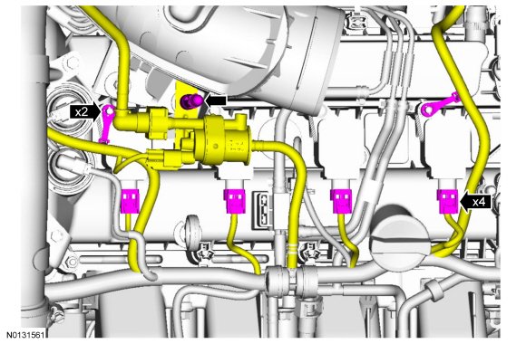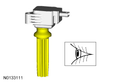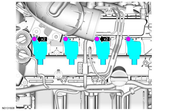 3. NOTE: Use compressed air to remove any foreign material from the ignition coil-on-plugs and surrounding area before removing the ignition coil-on-plugs.