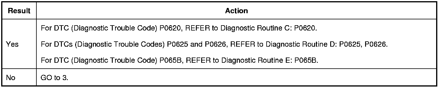 Is DTC (Diagnostic Trouble Code) P0620, P0625, P0626 or P065B present?