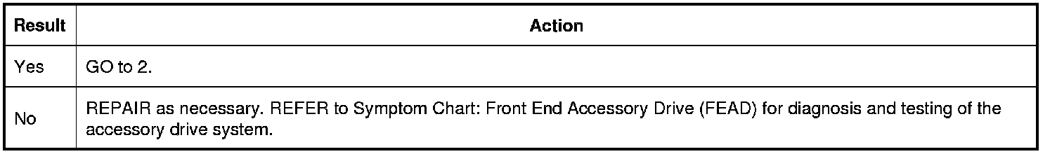 2. Check the accessory drive belt and tensioner for damage and correct installation. REFER to Accessory Drive Belt or REFER to Accessory Drive Belt Tensioner .