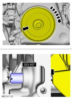 Rotate the crankshaft slowly clockwise until the crankshaft contacts the 303-507.