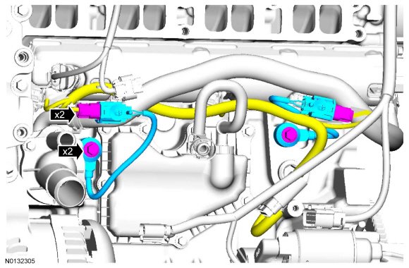 2. NOTICE: The RH (Right Hand) KS (Knock Sensor) must be installed in the 6 o'clock position and the LH (Left Hand) KS (Knock Sensor) must be installed in the 3 o'clock position. Failure to follow these instructions may result in damage to the engine.