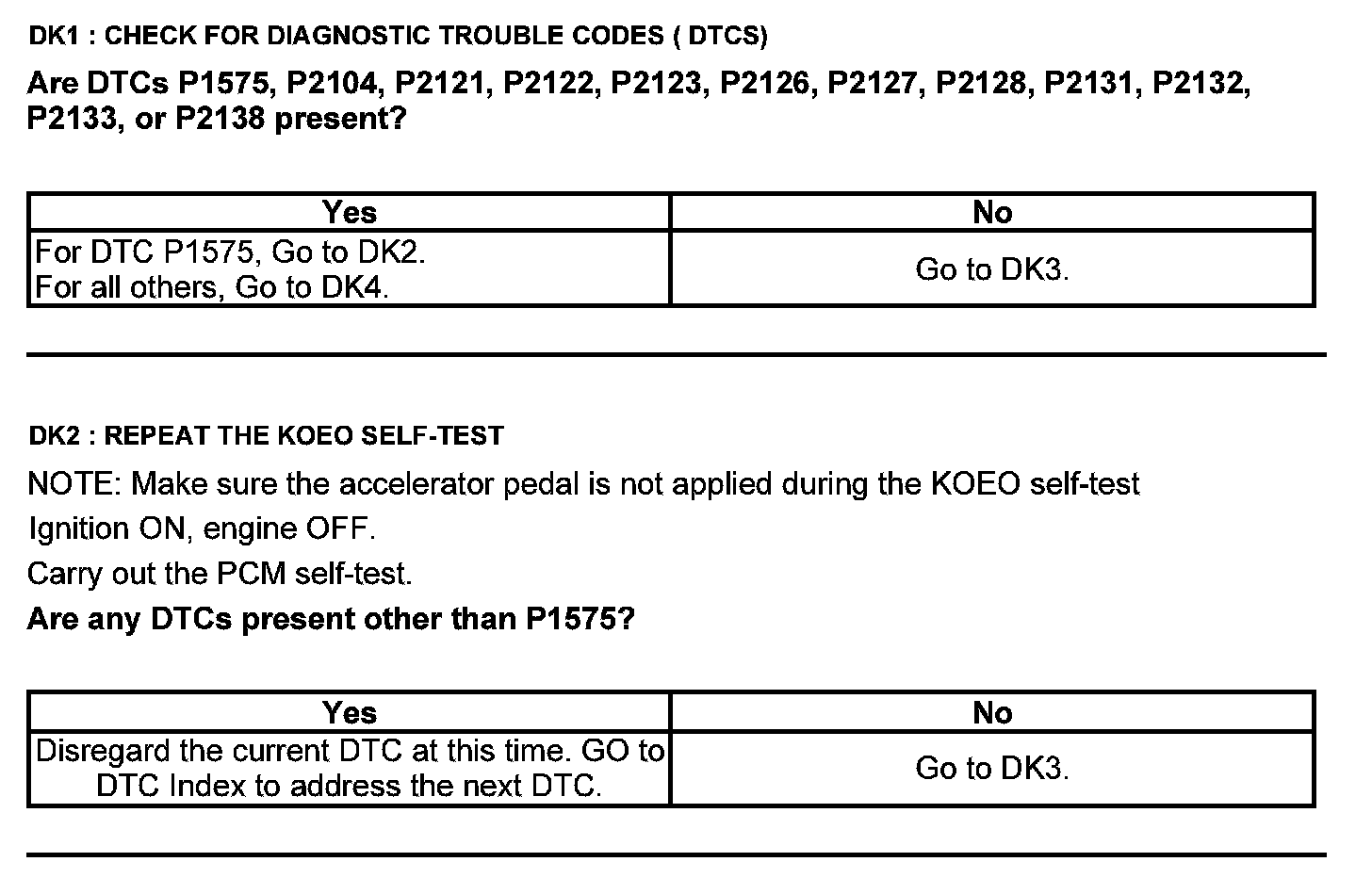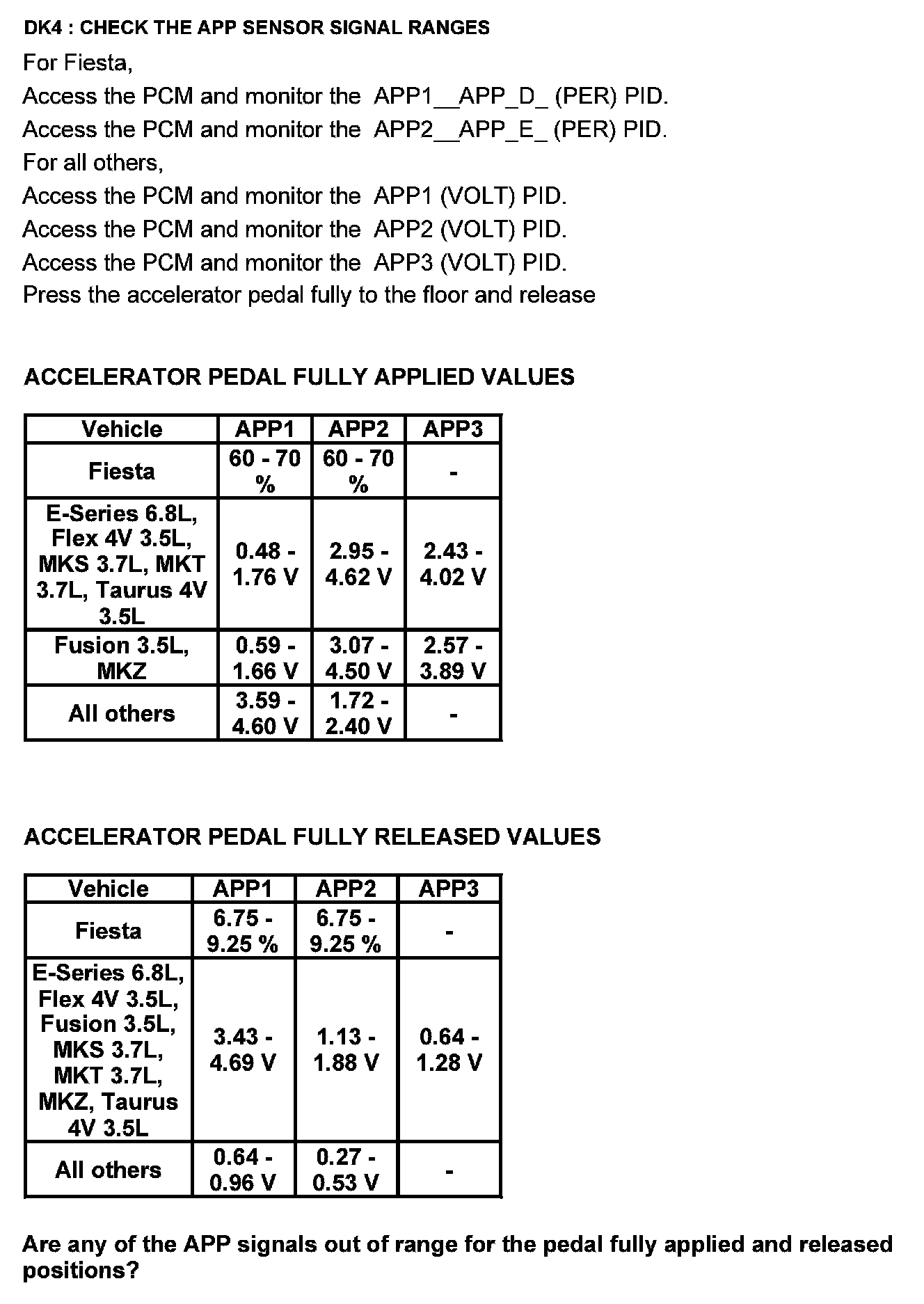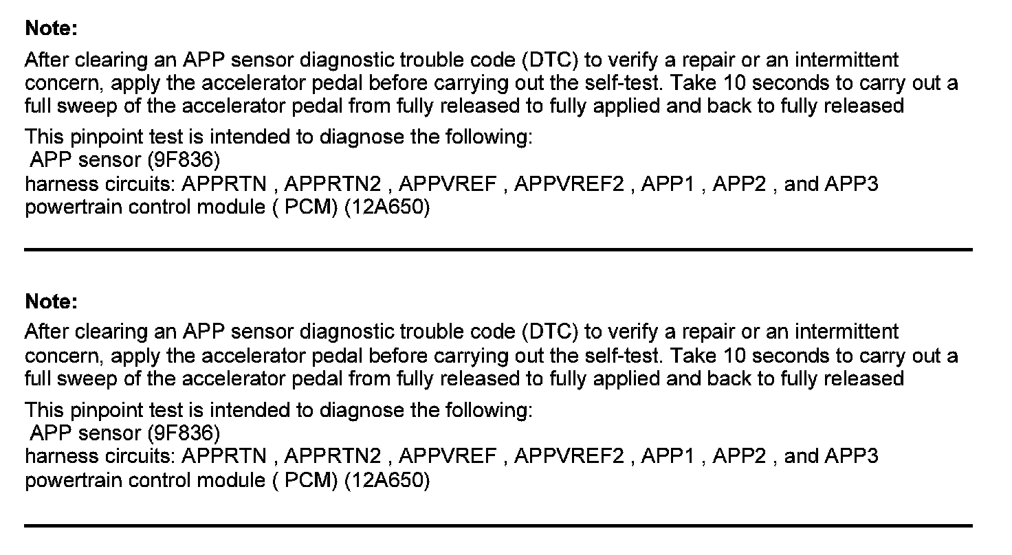 Home >> Ford >> 2012 >> Explorer FWD L4-2.0L Turbo >> Repair and Diagnosis >> Powertrain Management >> Computers and Control Systems >> Testing and Inspection >> Pinpoint Tests >> Test DK: Accelerator Pedal Position (APP) Sensor