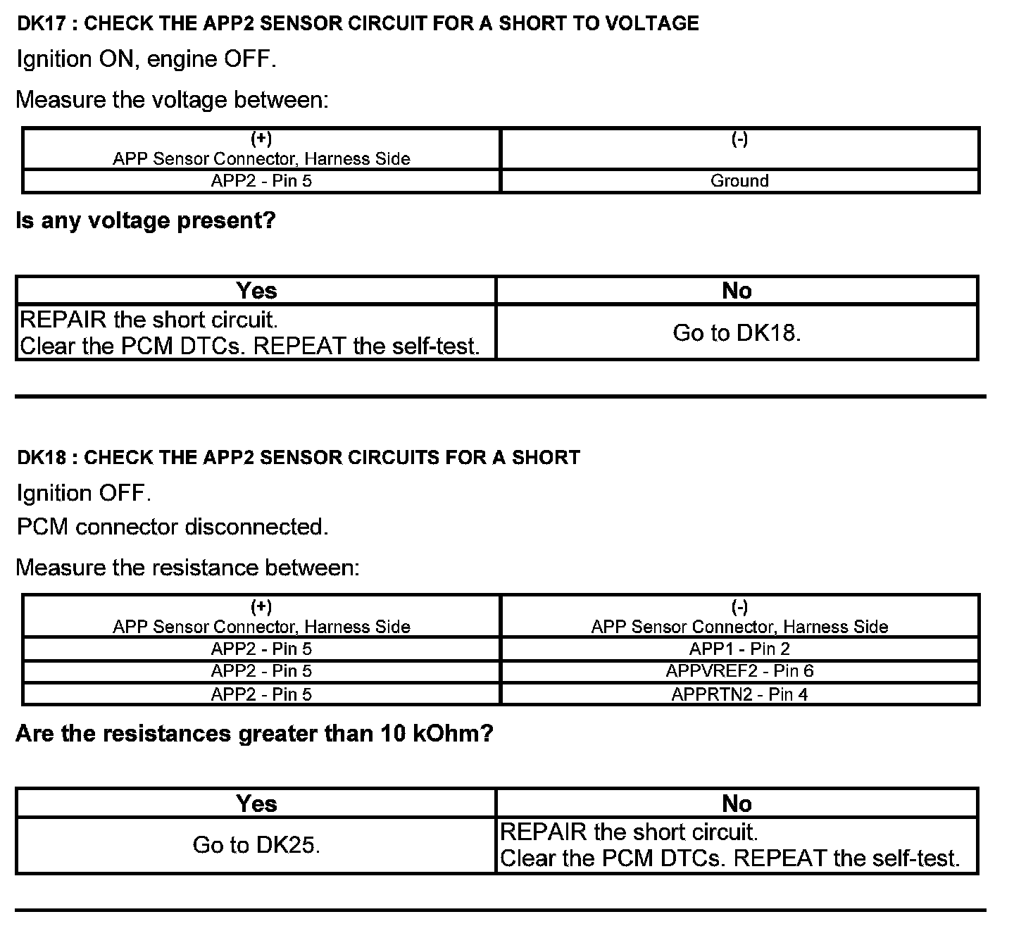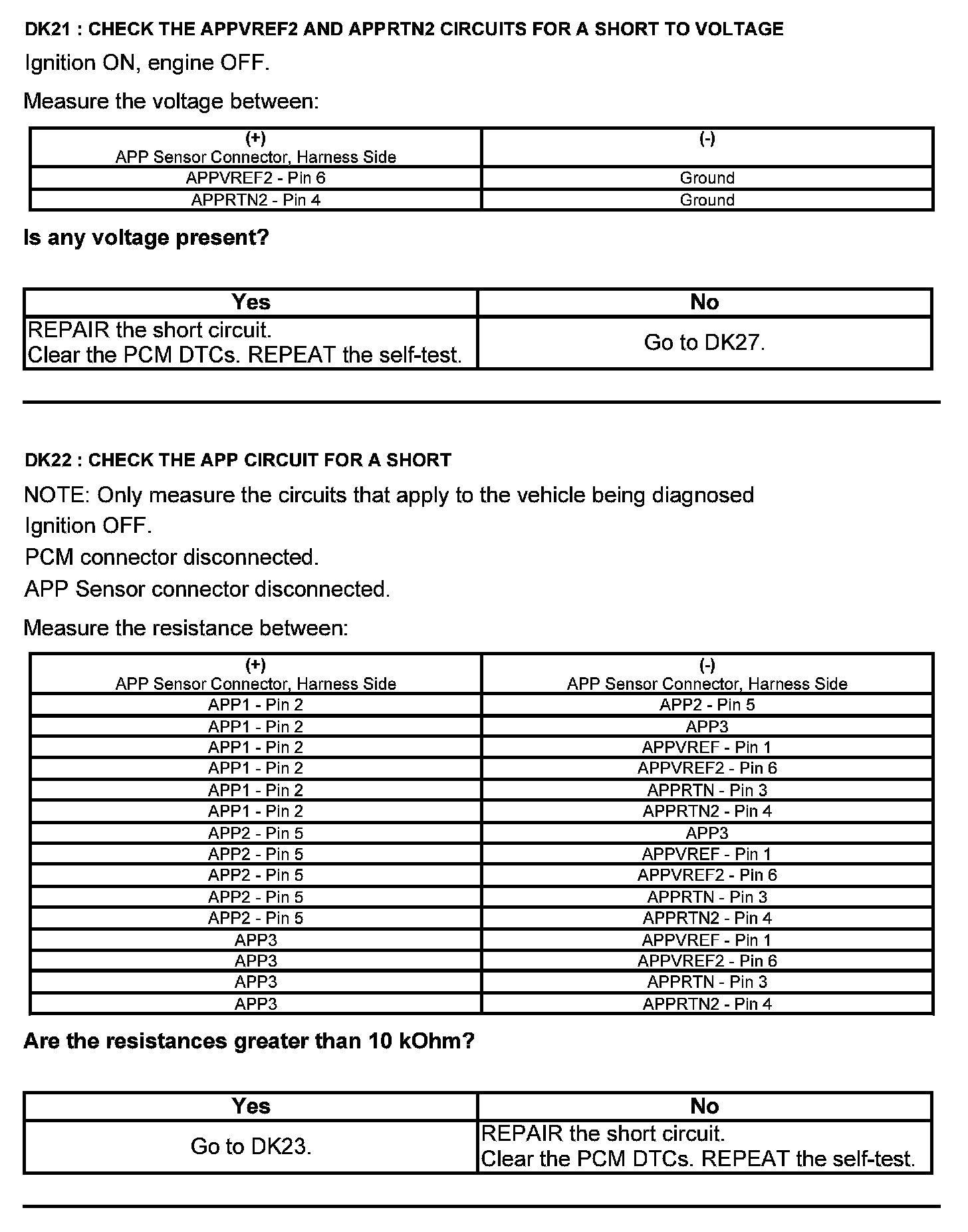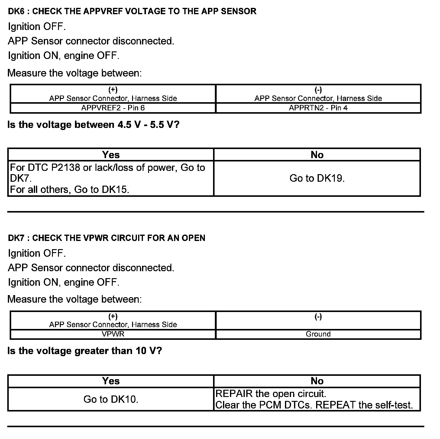 Test DK: Accelerator Pedal Position (APP) Sensor