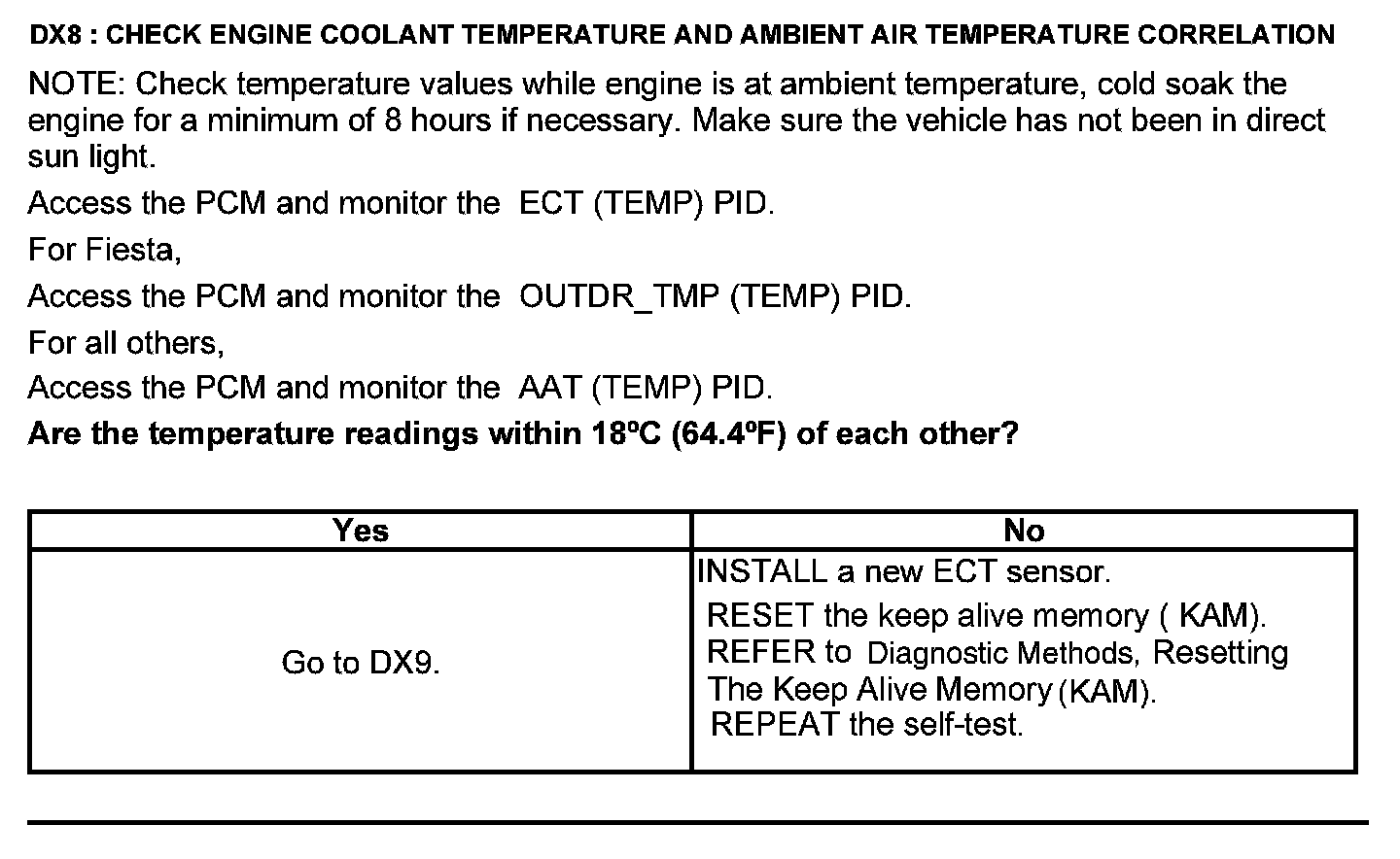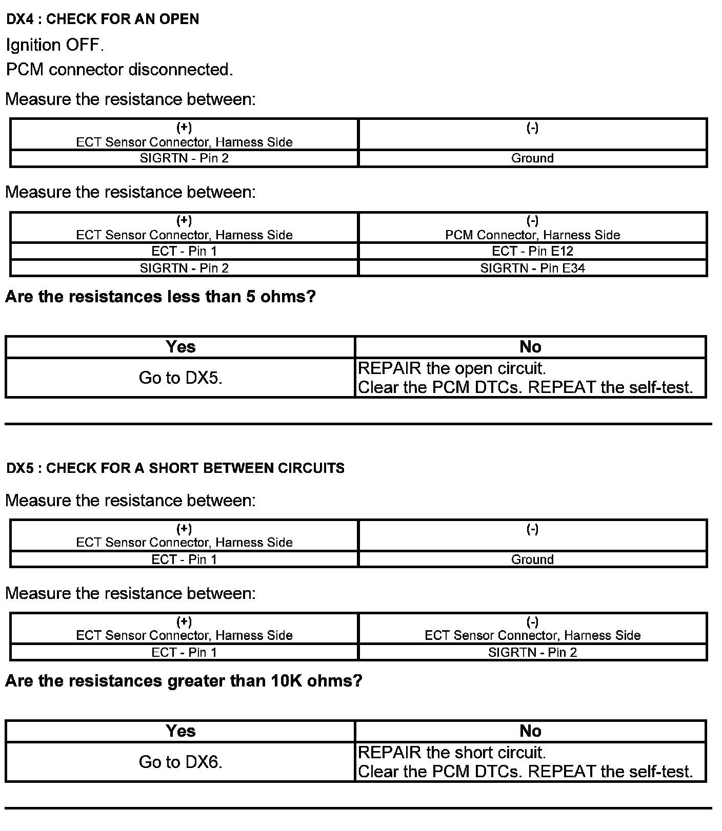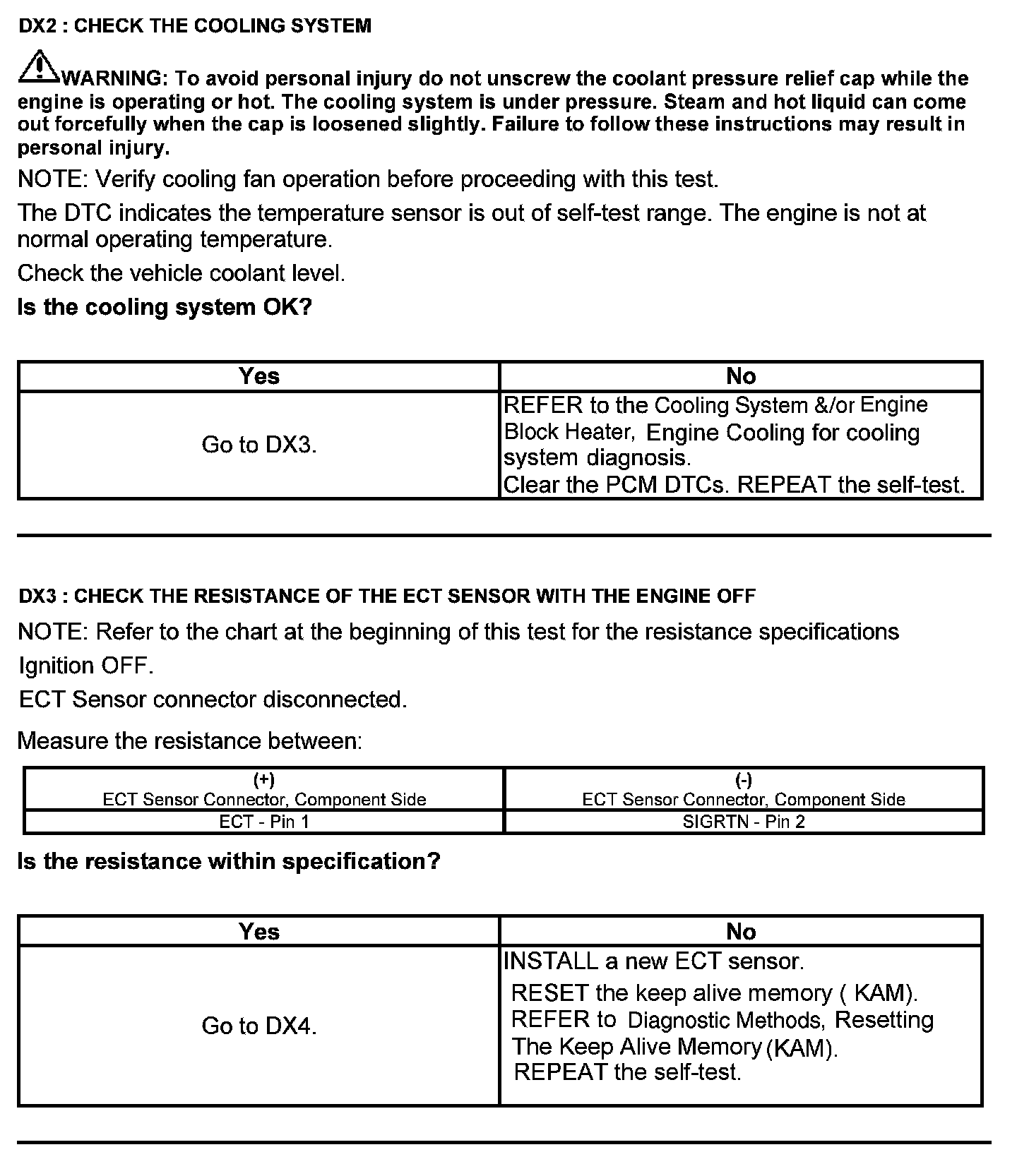 Test DX: Engine Coolant Temperature (ECT) Sensor